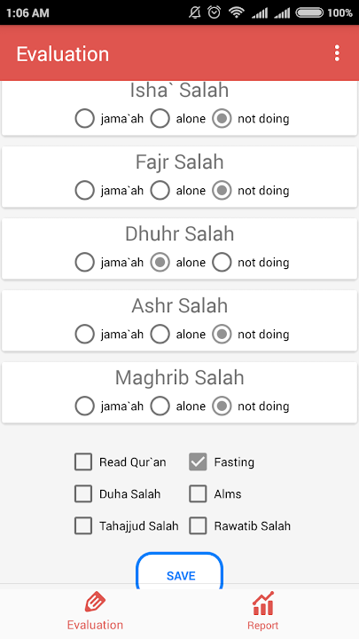 Moslem/Muslim worship evaluation is app for control your daily pray / worship (Wajib and Sunnah)