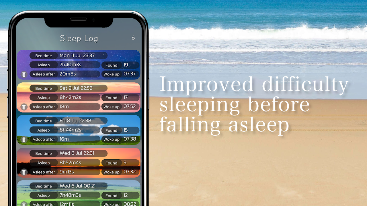 The time from when you go to bed to when you fall asleep is recorded as "sleep latency". This application, which specializes in improving sleep patterns, places emphasis on improving sleep latency in addition to increasing the number of observations.