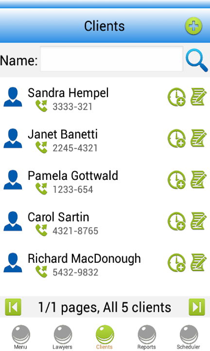★ The Reports section offers details of all appointments including name of client, time of appointment, total earned income and the name of the lawyer as well. This section is a mini report version which also shows previous meetings with the client along with date and time.