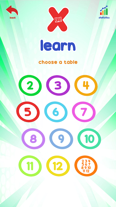 Application for children to quick, easy and fun learning and testing knowledge of the multiplication tables from two to 12.