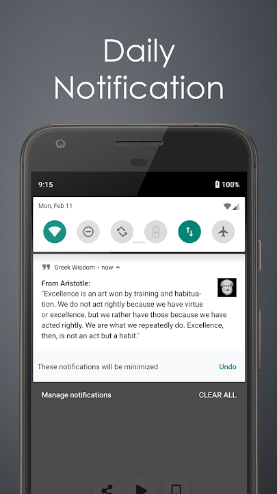 The app contains a total of 700+ quotes that are deep and thought provoking. Enough to satisfy your daily curiosity about questions on your day to day life events. Share your favorite free quotes with your friends and family, get a notification for a new one each day, and browse as many as you want.
