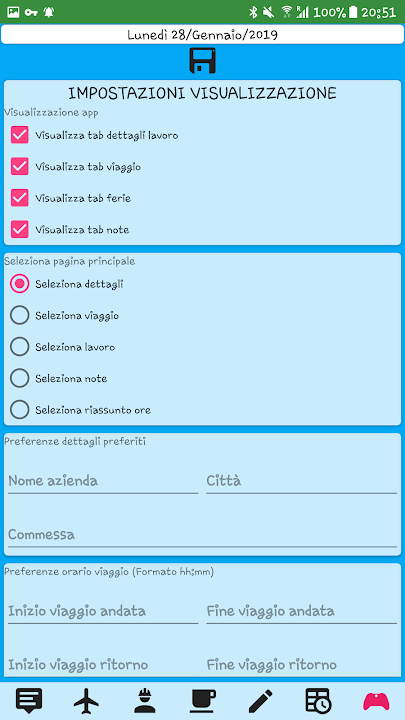In oltre è possibile avere un report mensile direttamente dall'app, decidere i giorni festivi settimanali, le ore ordinarie la quale oltre viene conteggiato come straordinario e creazione di file excel dettagliato di tutte le ore inserite e le ore totali tutte divise per categoria VIAGGIO, LAVORO, STRAORDINARIO. Dalle opzioni è possibile disattivare la categoria viaggio.