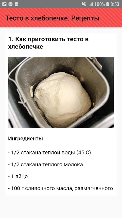 - Dough for bread in the bread maker