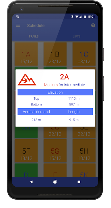 • the detailed specifications of every lift and trail (type, top and bottom altitude, altitude difference, length);