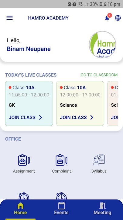 It is a complete school management app with multiple login system for parents, teachers and students. All the information , news and notice related to the school are accessible from the app itself.