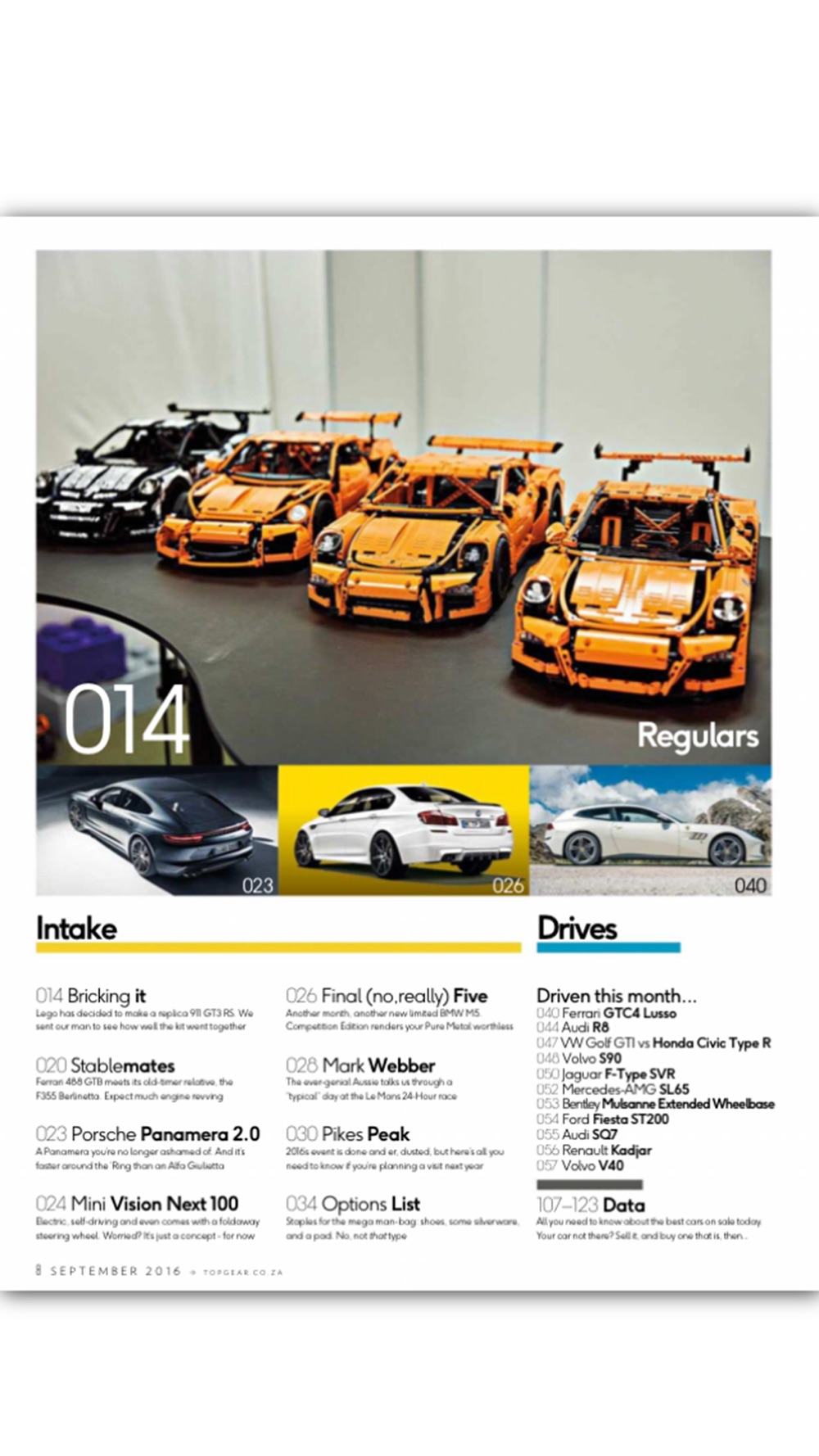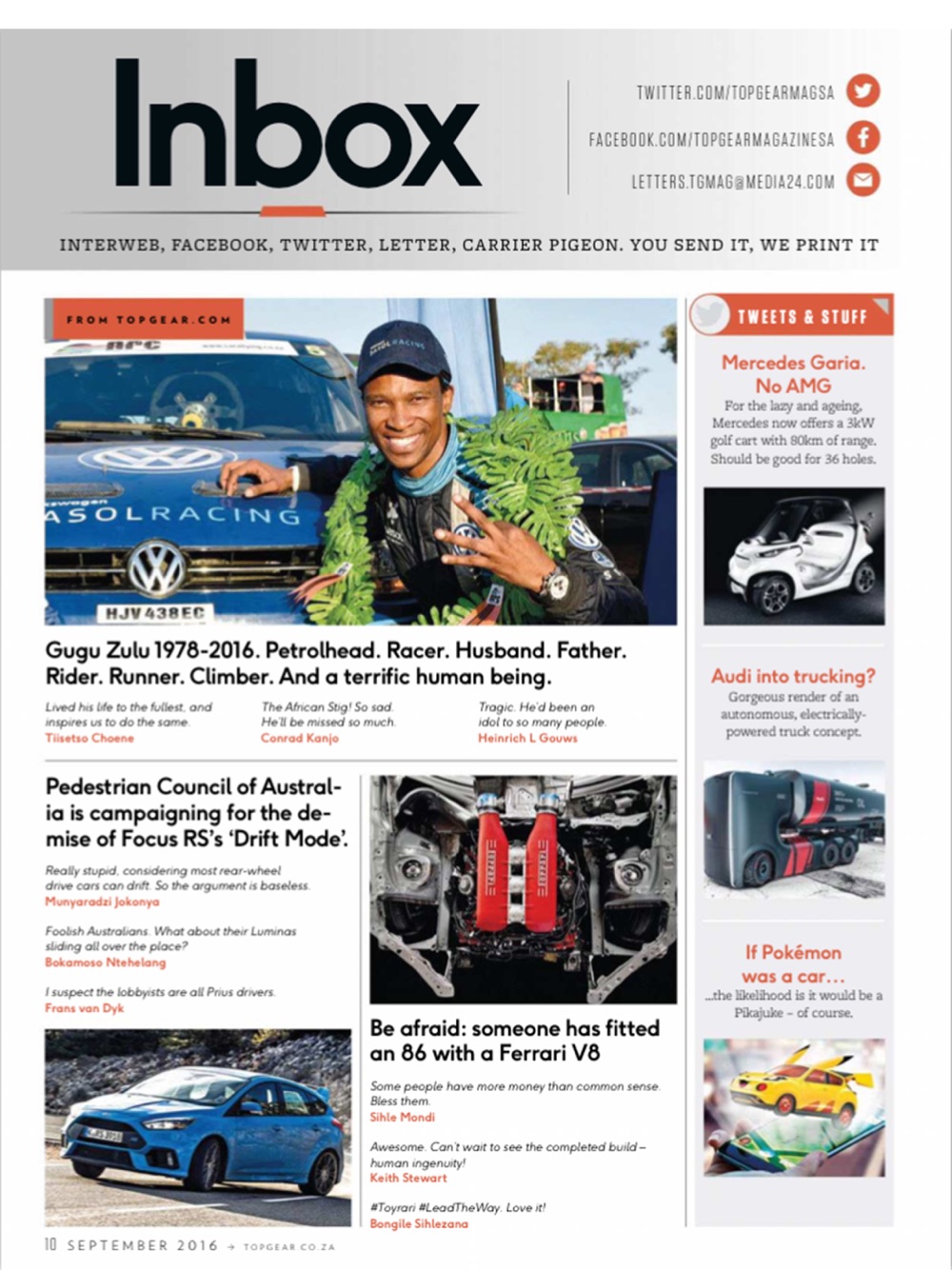 TopGear South Africa: the world’s most entertaining motoring magazine provides entertainment, excitement and information for anyone with a passion for cars and motoring. It appeals to motoring enthusiasts and fans of TopGear TV alike.