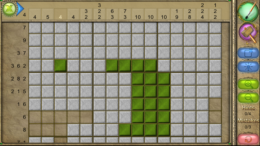 An old Japanese logic puzzle takes on a new look with FlipPix Art! Touch tiles to paint them or break them to form colorful components of paintings. The goal is to use logic to determine which tiles should be filled to reveal a hidden picture.