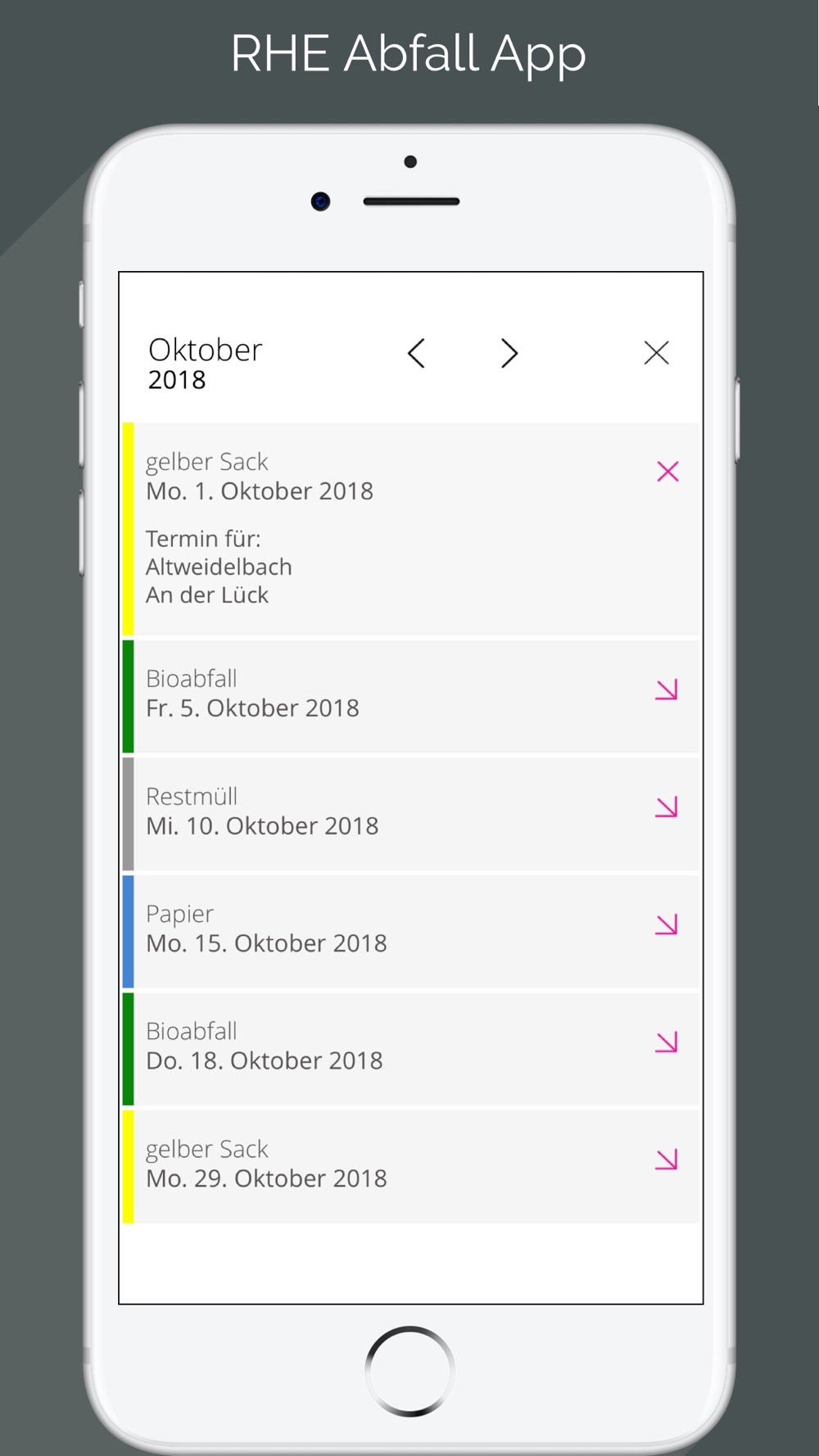 // Abholtermine des Hausmüll (Abfallkalender App mit individueller Erinnerungsfunktion)