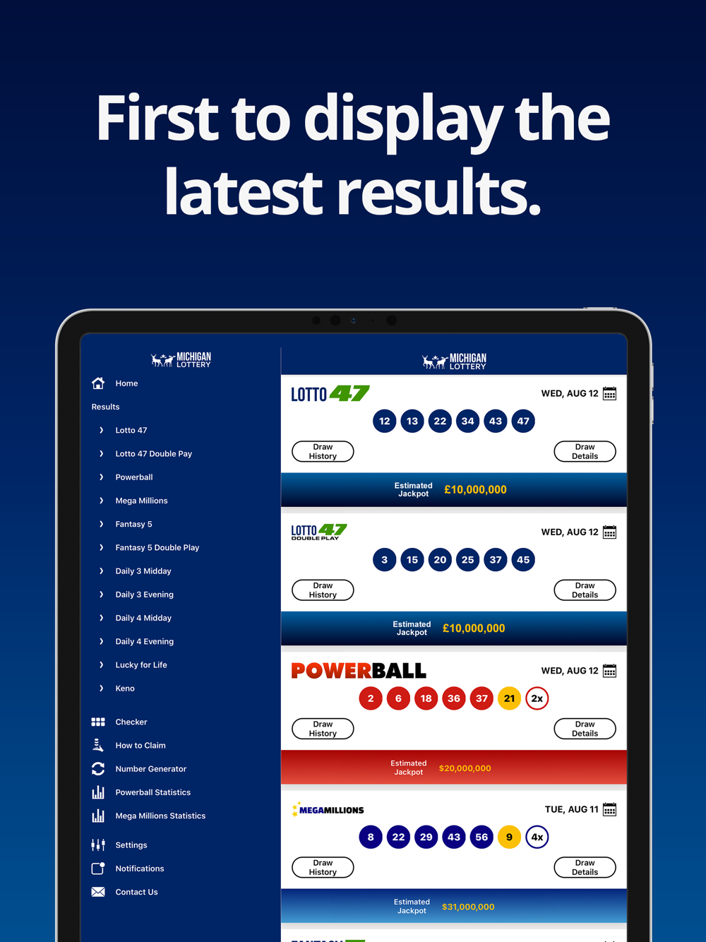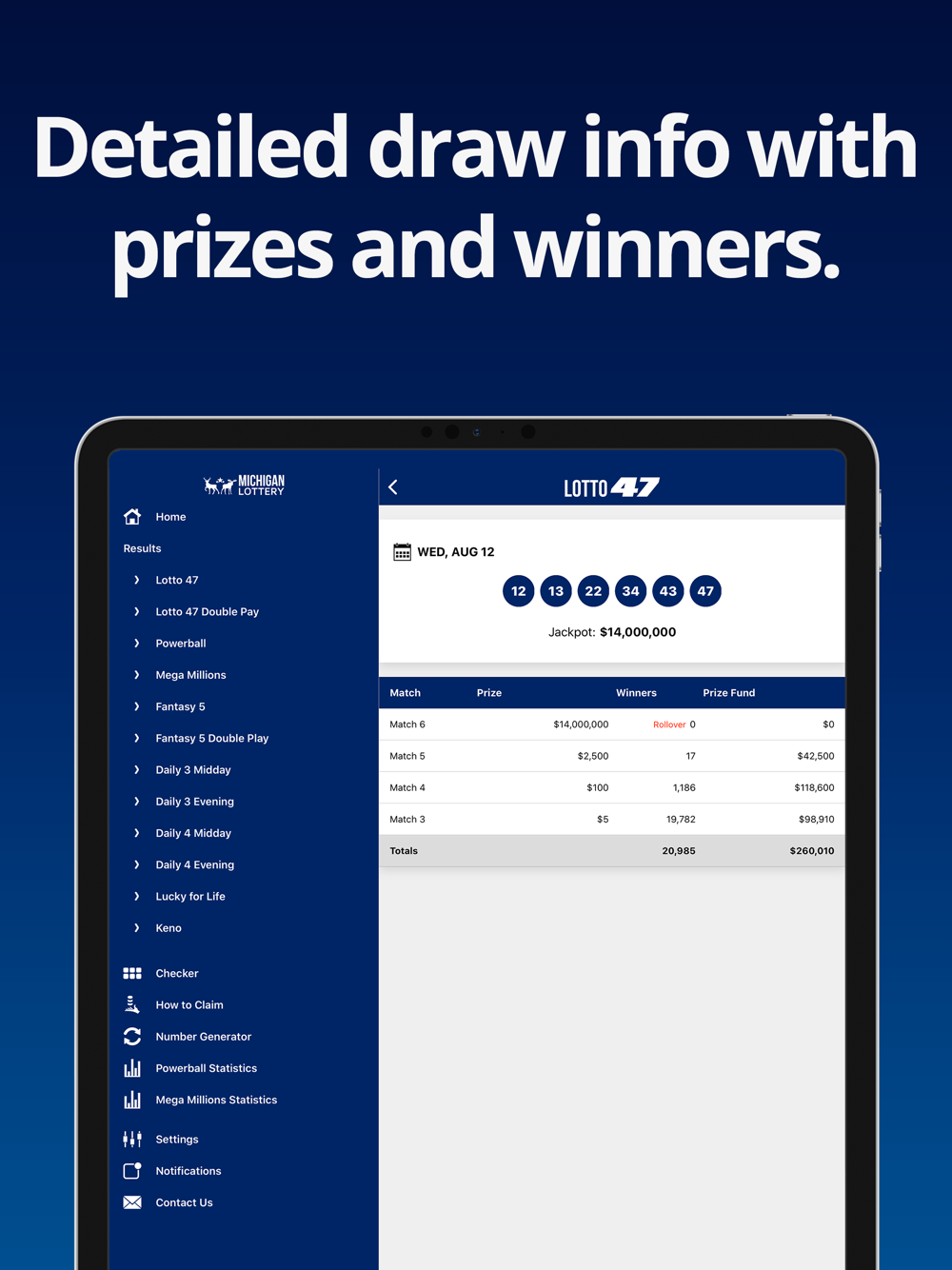 Get the latest Michigan lottery results within minutes of the draws taking place. This easy-to-use app includes the following lotteries: