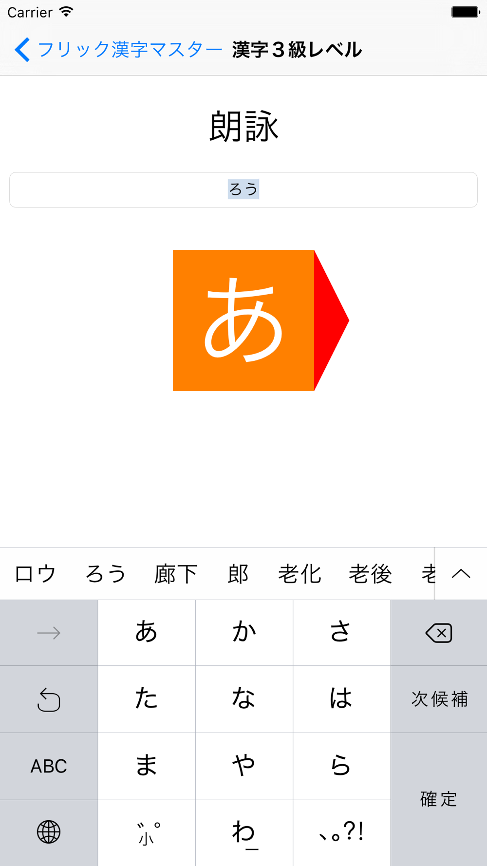 正しい読み仮名が入力されれば、次の問題が出題されます。漢字の読み方がわからなくてもフリックガイドに従って文字を入力すれば読み方がわかるようになっています。