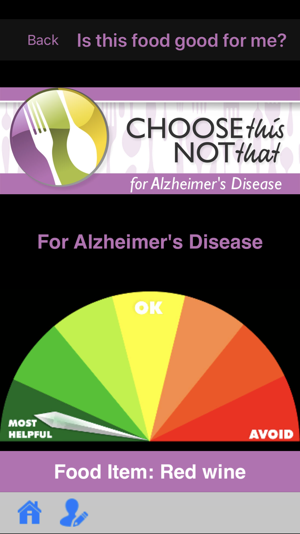 • Is this food good for me? Answers the common question about suitability of various food items for your personal situation. And it does so in an easy to understand and colorful graphic form.