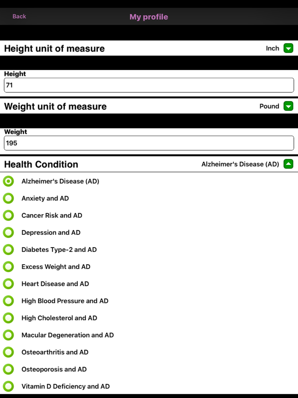 • Health issues often come our way in groups of two or more. They are often caused by other health complications or result in other illnesses and risks. This publication is the only one on the market that also offers dietary guidance for the COMBINATION of AD and the following health issues common among AD patients and those at high risk of developing AD: Anxiety, Cancer risk, Depression, Diabetes Type-2, Excess weight, Heart disease, High blood pressure, High cholesterol, Macular Degeneration, Osteoarthritis, Osteoporosis, and Vitamin D Deficiency.