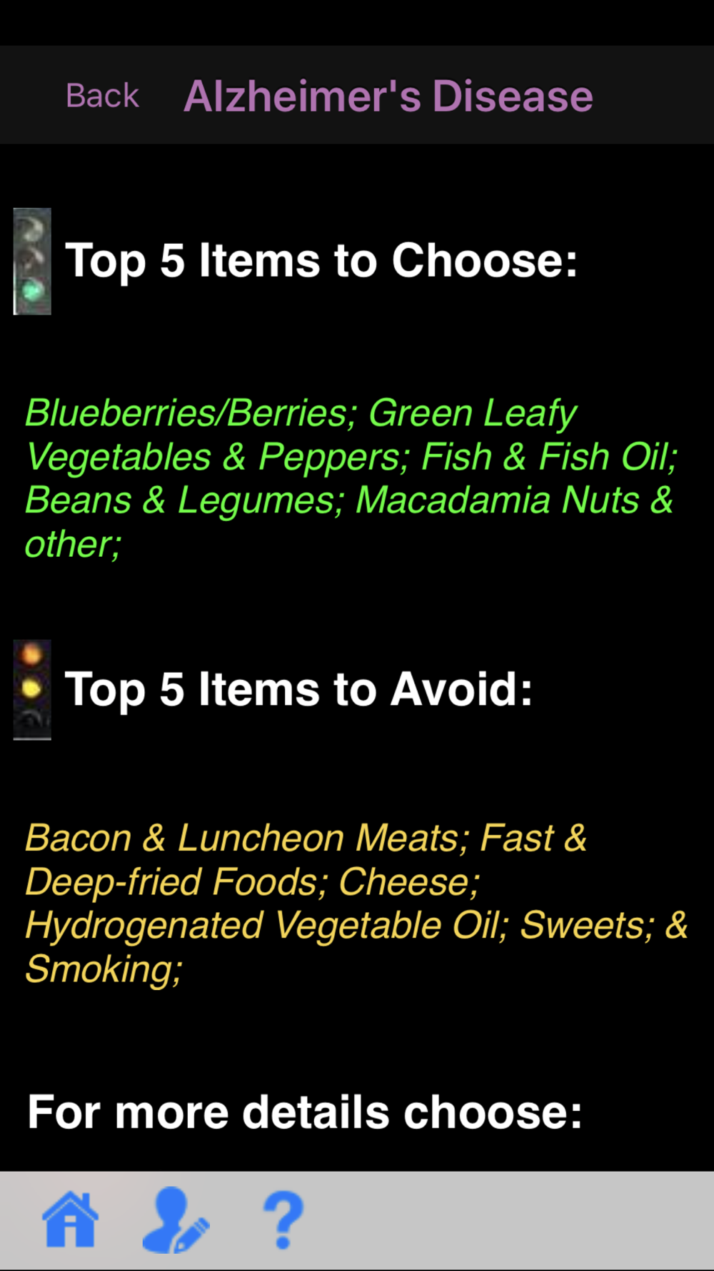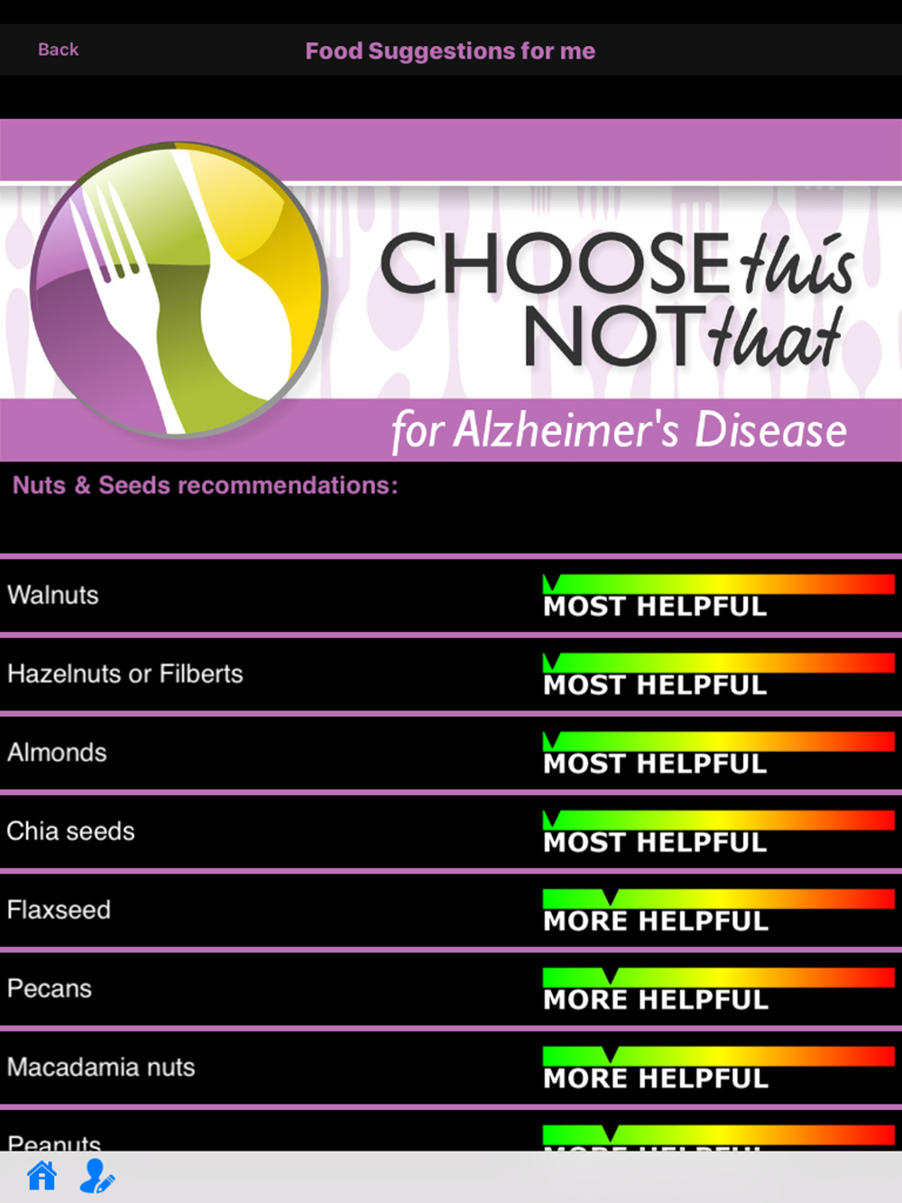 Choose This not That for Alzheimer’s Disease. The most promising guidelines to-date, to lower the risk of Alzheimer’s Disease (AD) was published through the research conducted by the scientists at the Rush University. These dietary guidelines are known as the MIND diet. Adherence to this diet showed up to 53% reduction in risk of developing AD among participants. This colorful app provides comprehensive, actionable and easy to follow guidelines based on the MIND diet.