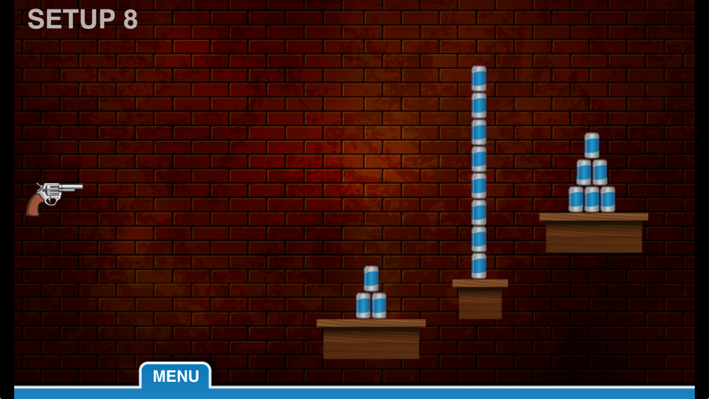 Endless hours of fun shooting tin cans. Pick one of the tin can configurations and start shooting. There is also a Can Toss mode which is fun and challenging. Have fun shooting and watching the cans flying around on the screen!