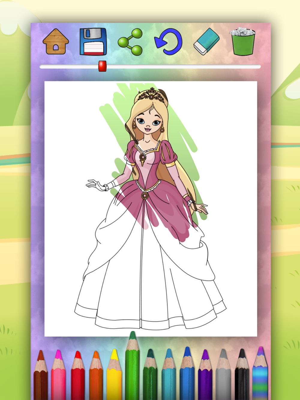 "你喜欢色彩和童话公主画图纸?立即下载并开始颜色,油漆或涂鸦本图画书。