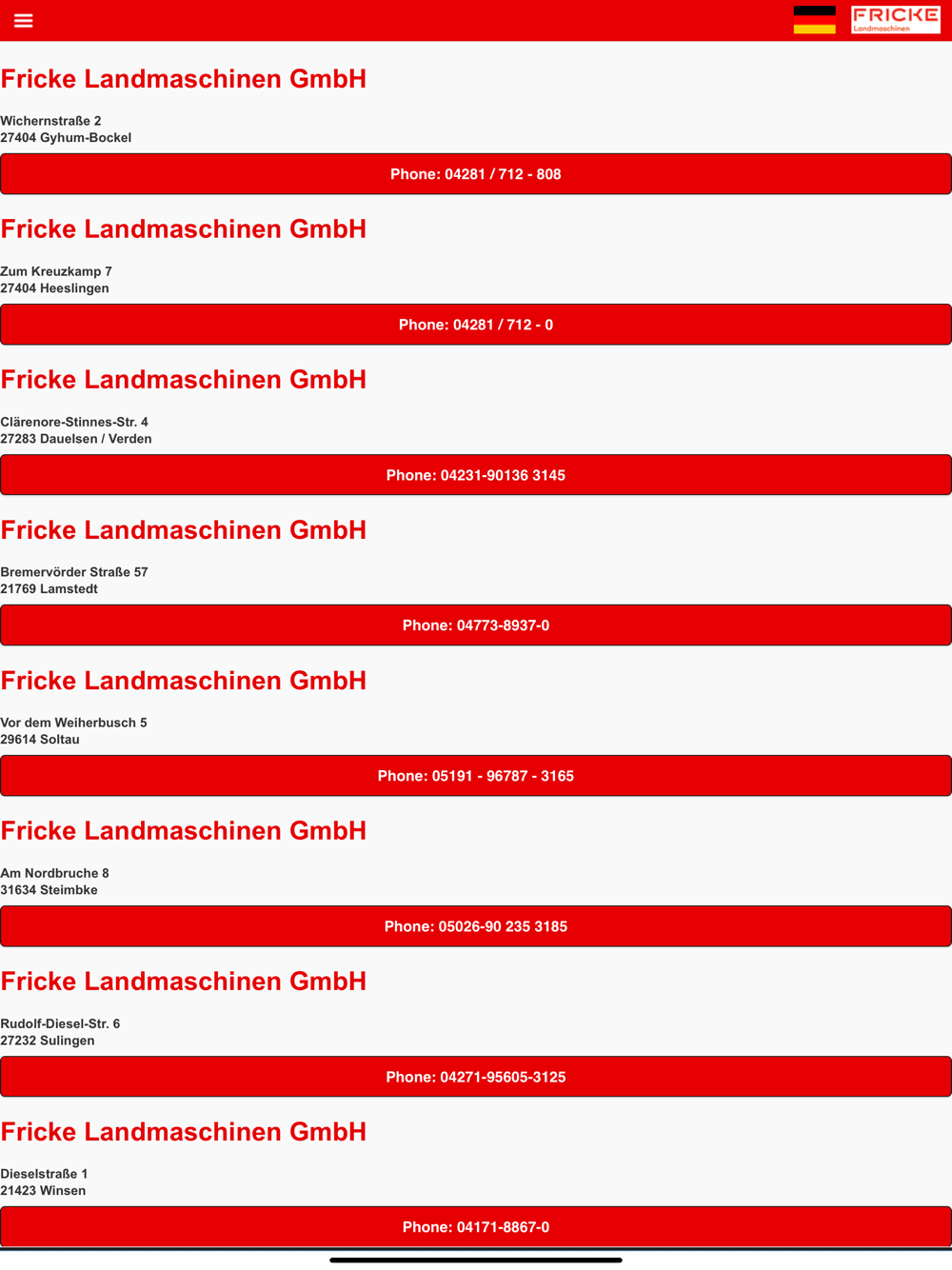 Die offizielle App der Fricke Landmaschinen GmbH bietet Ihnen dauerhaft über 1000 Gebrauchtmaschinen aus der Landtechnik, sowie Informationen über unsere Standorte und Ansprechpartner.