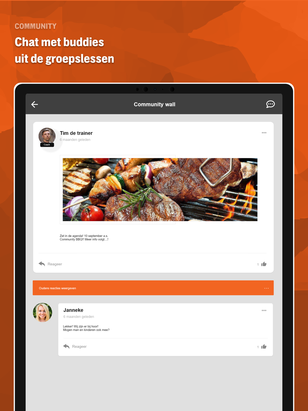 - Houd je trainingprogressies bij en volg je trainingbuddies.