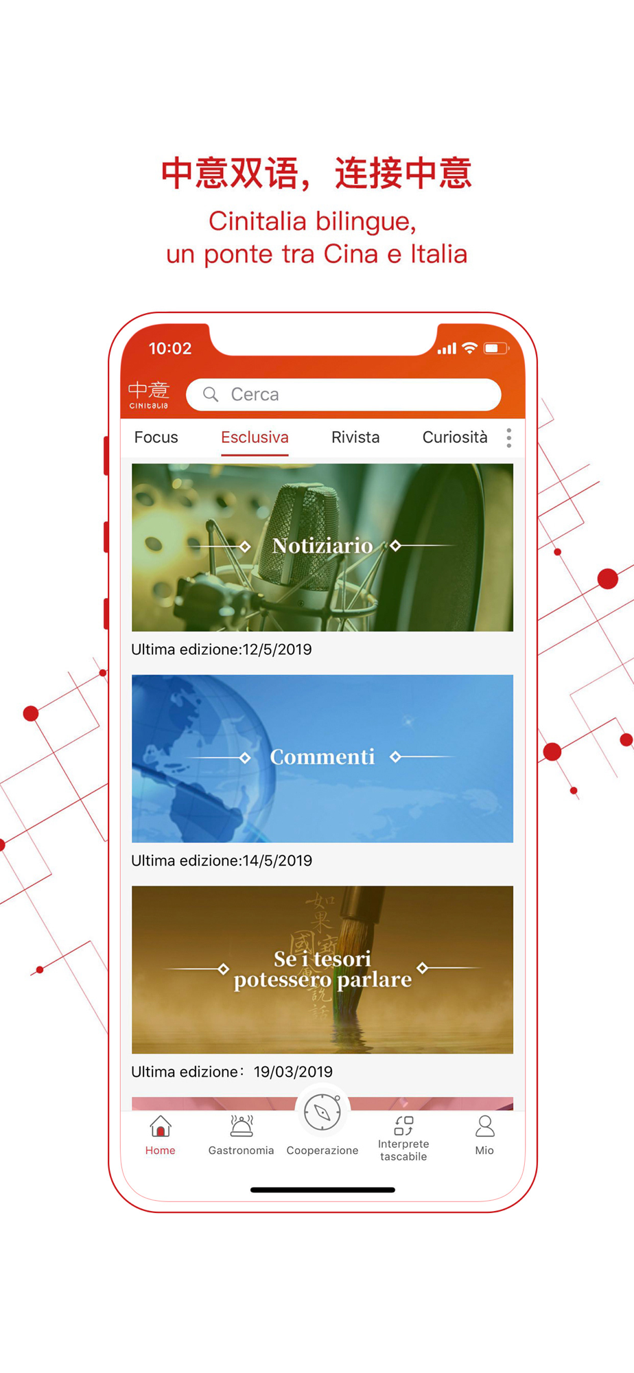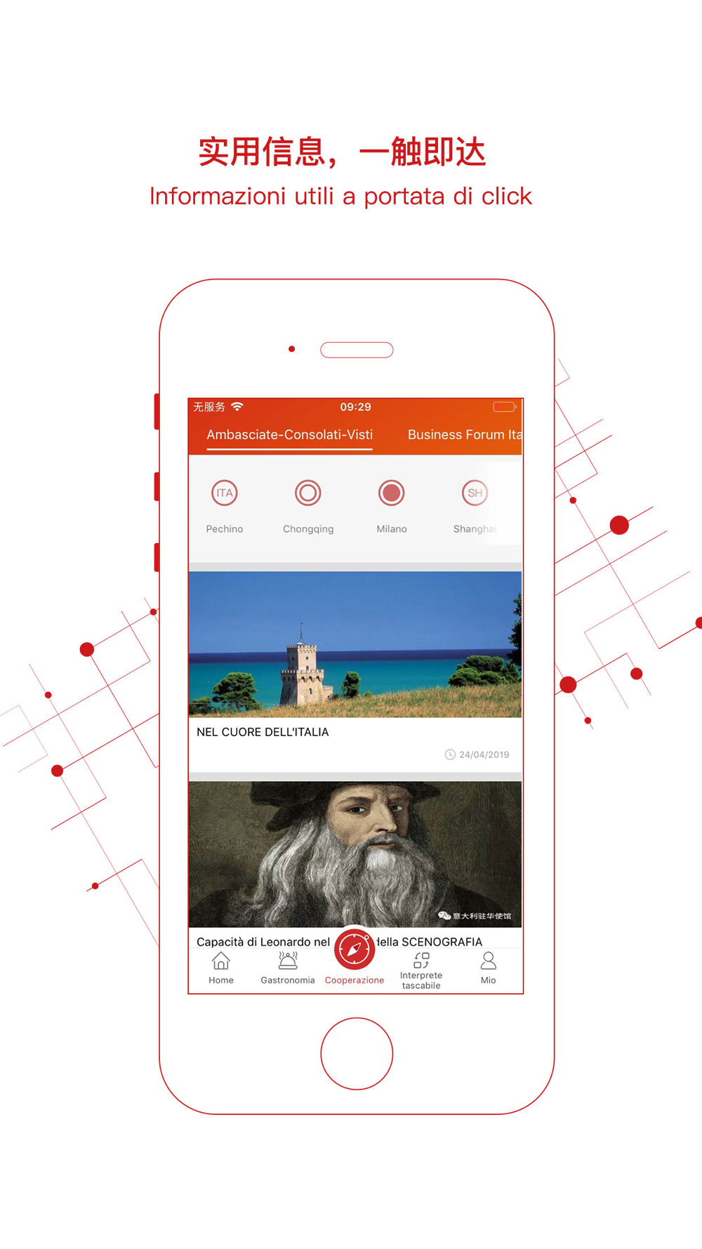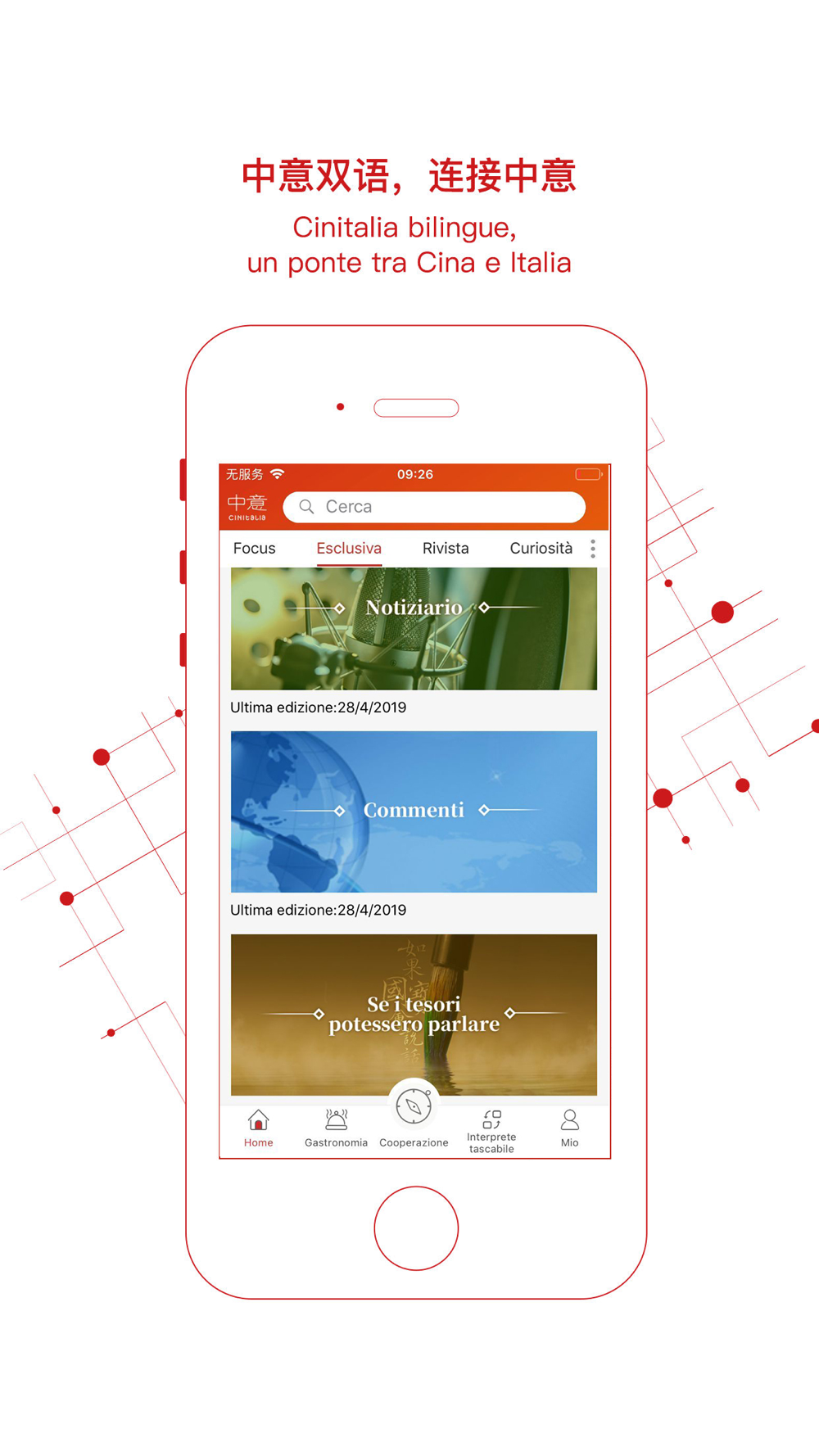 中意客户端由中央广播电视总台(中国国际广播电台)出品,是中意两国间第一个官方、双语的资讯及服务类客户端。