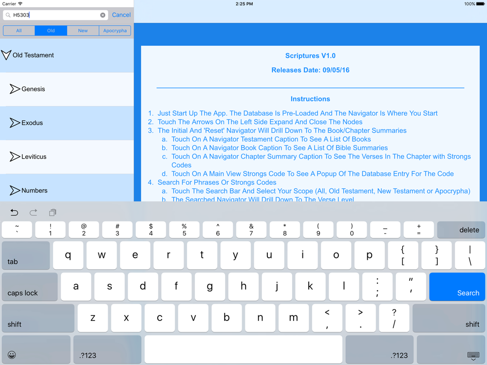 Sacred Scriptures Features A SQL Database that contains The Authorized King James Bible, Book Of Jasher, Book Of Enoch, Book Of Jubilees, Apocrypha, Kings James Bible With Strong's Codes, and the Strongs Concordance.