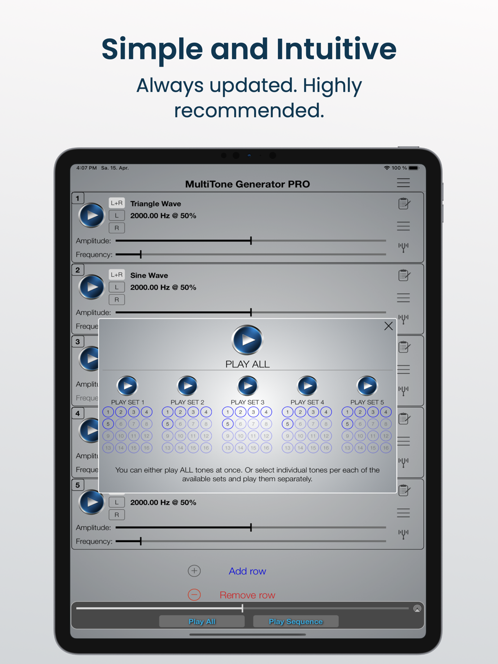 Upgrade to PRO and CREATE up to 16 tone combinations. Play them individually or combined.