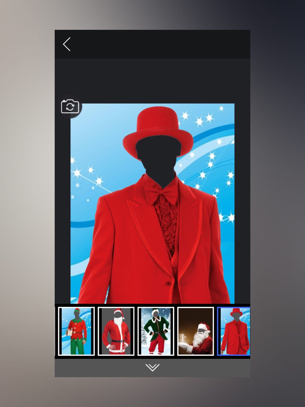 Christmas Photo Booth is the latest photo montage app created especially for Christmas! Do you want to look like Santa Claus? Check out these Santa Claus costumes that are created to make your kids happy. Download app and enjoy in Christmas wonderland. Put on your St. Nickolas costume at the start of the season and you will have an amazing look for holidays. Amaze your child with free Santa Claus photo manipulation! You can also put a wig and beard on your head, gloves, glasses and other accessories. Wear complete Santa suit for the most realistic look. Get costumes for free and spread the joy and happiness of the Christmas season.