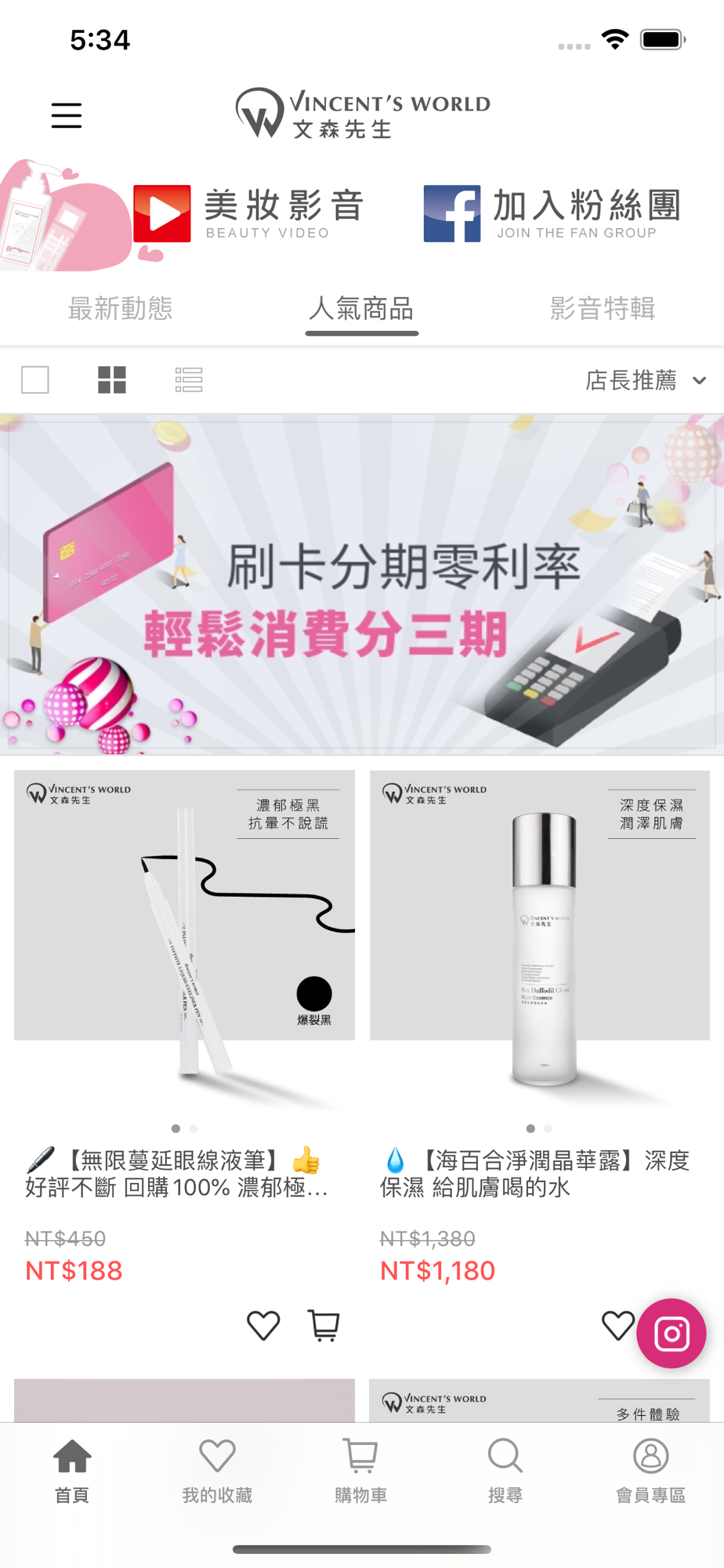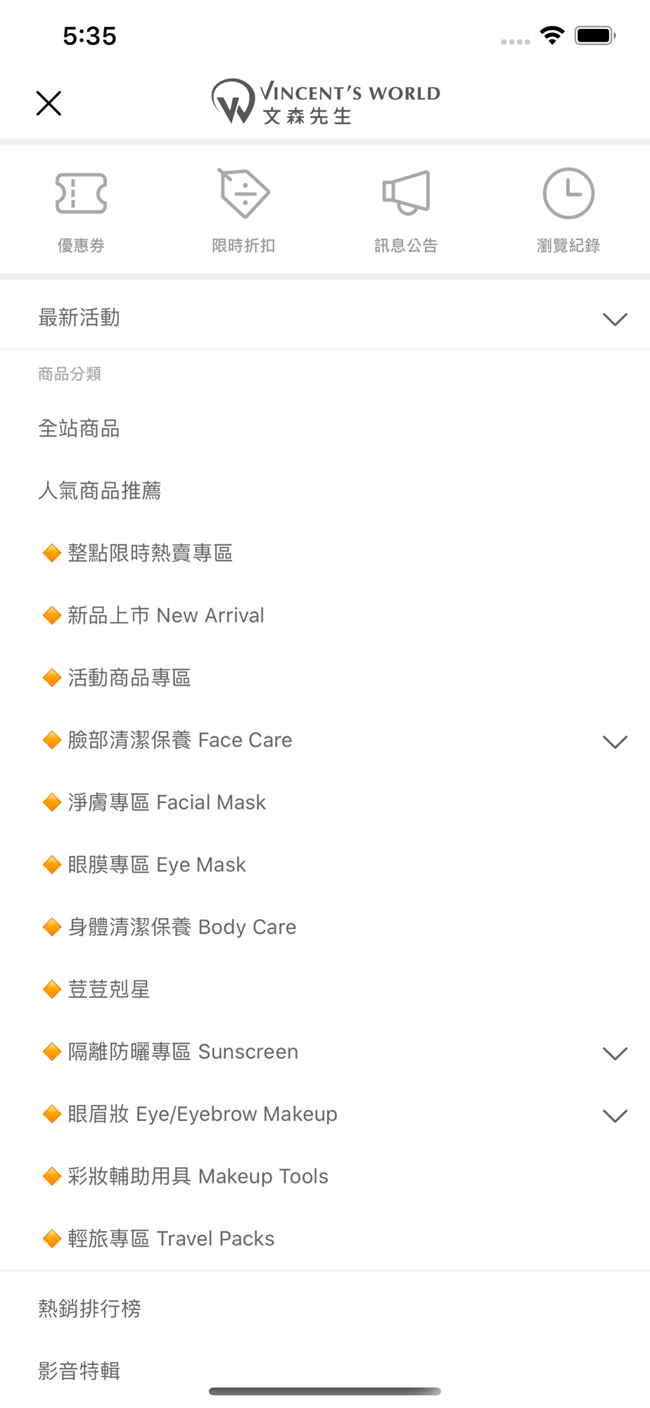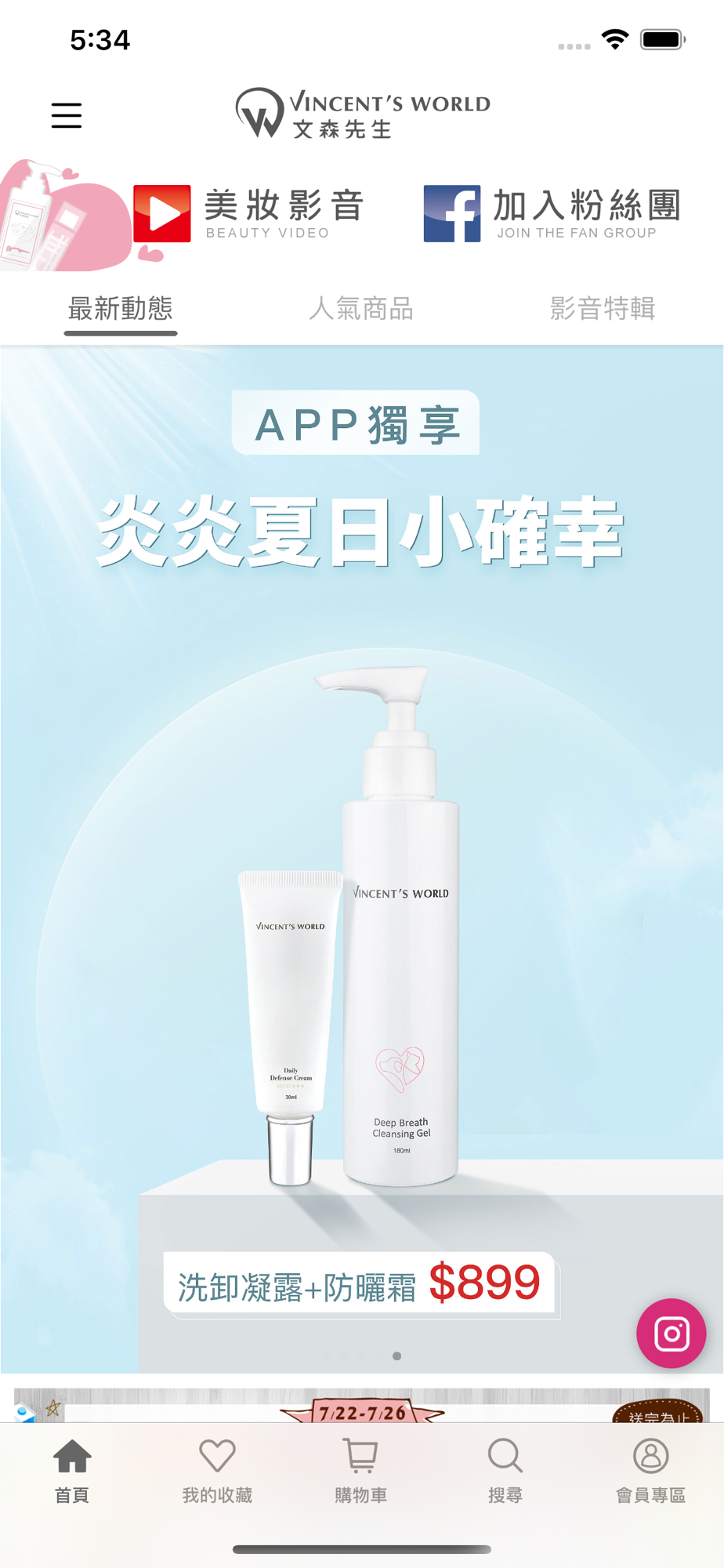 文森先生官方APP不定時推出限定優惠!APP會自動推播訊息,讓你不再錯過任何好康活動。文森先生用最高規格研發專屬於妳的美妝品,讓懶惰的妳也能擁有美麗;同時產品均經SGS檢驗合格,今天起,妳的美~VINCENT'S WORLD 來守護。量身推薦您最佳美妝品,就在文森先生 APP!