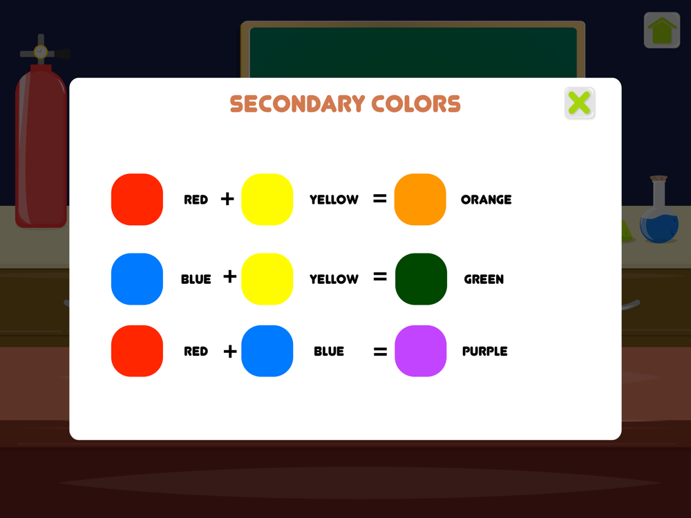 This educational application helps kids understand and learn the primary and secondary colors used for Coloring Games.