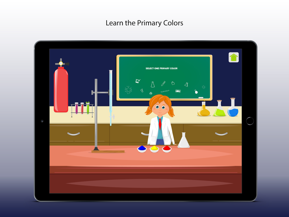 “Coloring Game for Kids” app helps the kids to learn about the primary and secondary colors in a set up of a Color Lab science for kids. This app is a Coloring Game app which helps to learn about Colors in an easy and simple way with colorful illustrations and exciting animations. The interactive approach of the app makes it a more immersive experience for the kids. The Coloring Game app concept is based on the basic primary and secondary colors. Kids can explore and enjoy the animations by taping the objects. The colorful images and animations will attract the children and they can learn coloring easily in a setup based on Color lab science for kids.