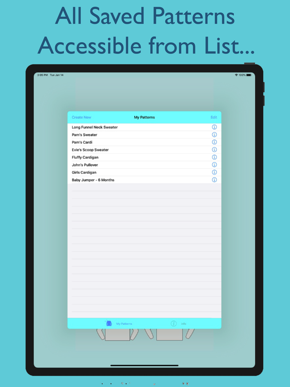 With the in-app purchase, you can also create and save as many patterns as you like, and they will all be accessible from a list within the app.