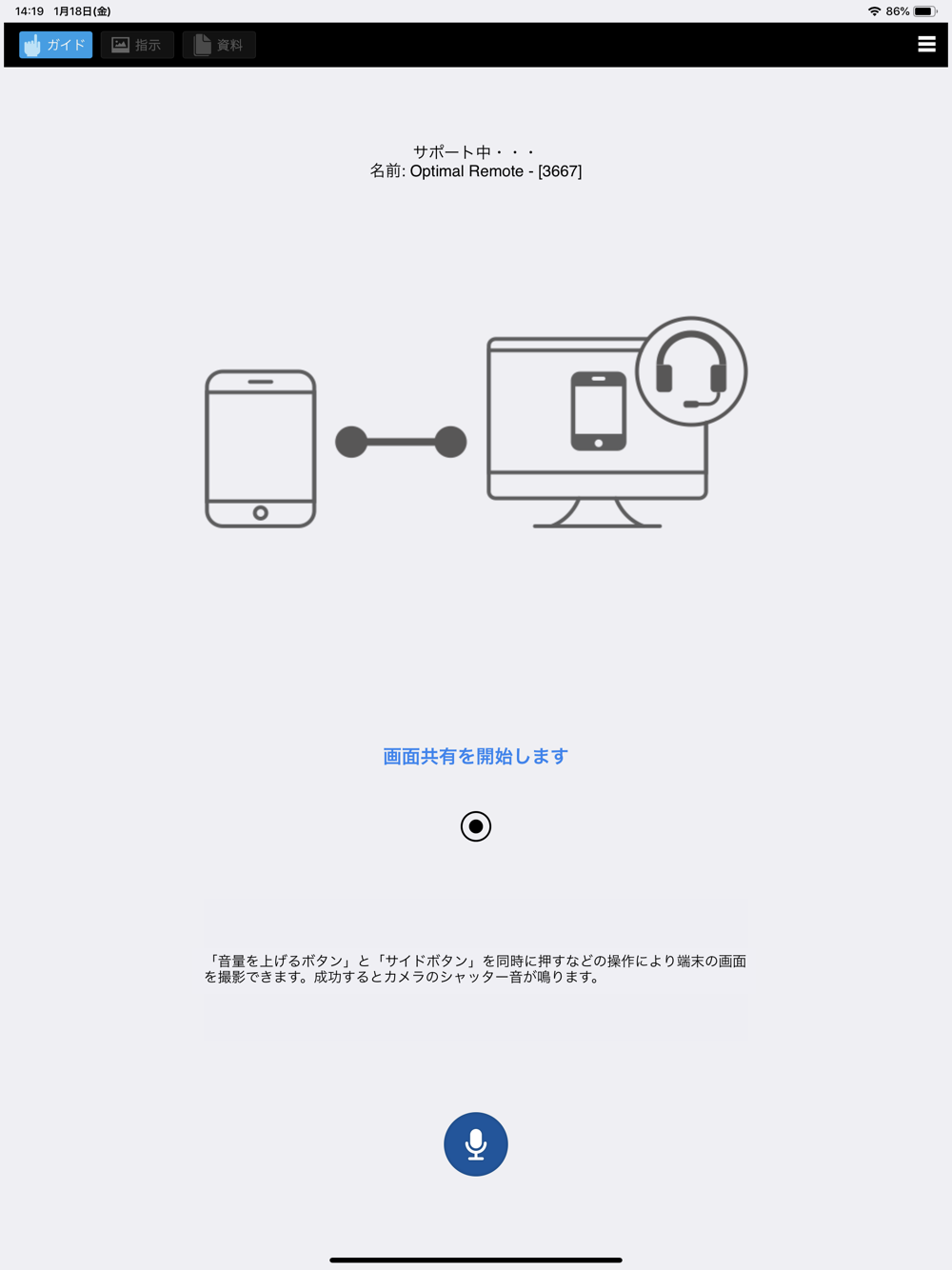 ビズリモを使えば、iPhone、iPadの画面を遠隔地にいる相手のパソコン画面と共有でき、同じ画面を見ながらスムーズにサポートを受けることができます。