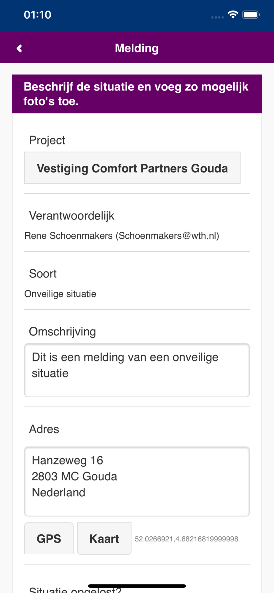 Bij TBI heeft veiligheid de hoogste prioriteit. Daarom heeft TBI de TBIveilig app ontwikkeld. Met de TBI app kan elke gebruiker een melding doen van een (onveilige) situatie. De meldingen die via de app zijn gedaan, worden gekoppeld aan de projectverantwoordelijk KAM manager zodat hij of zij direct geïnformeerd is en altijd een up-to-date overzicht heeft van alle meldingen. In de TBIveilig app heeft de melder een overzicht van alle gemaakte meldingen en de status daarvan.