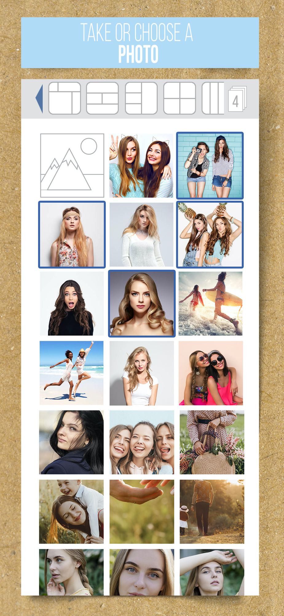 - Choose grid layout and join photos together