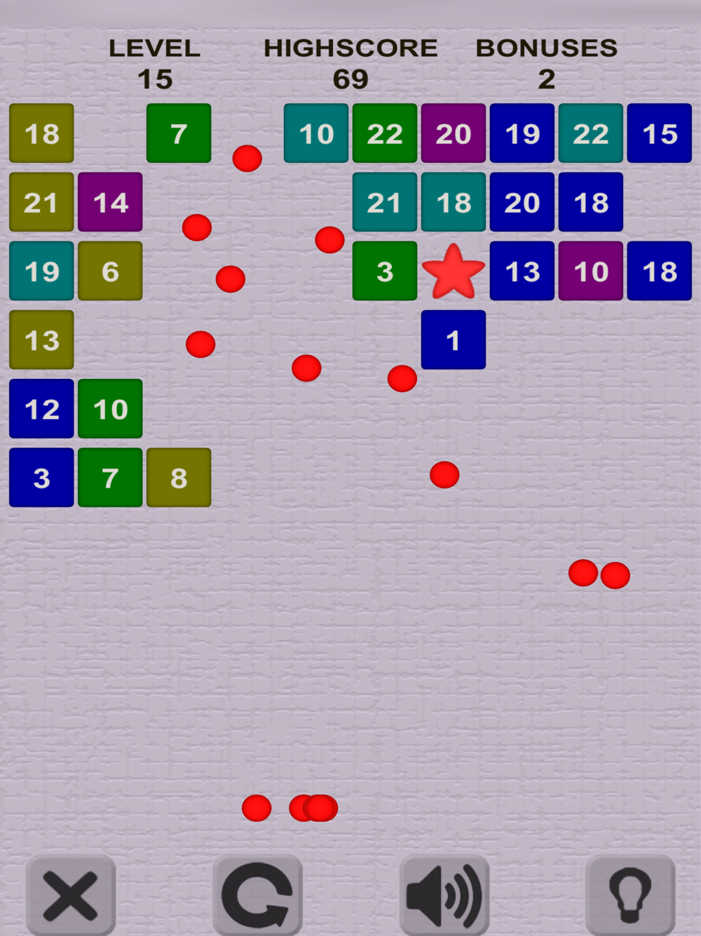 Specify the direction of movement of the ball to destroy as many blocks as possible.