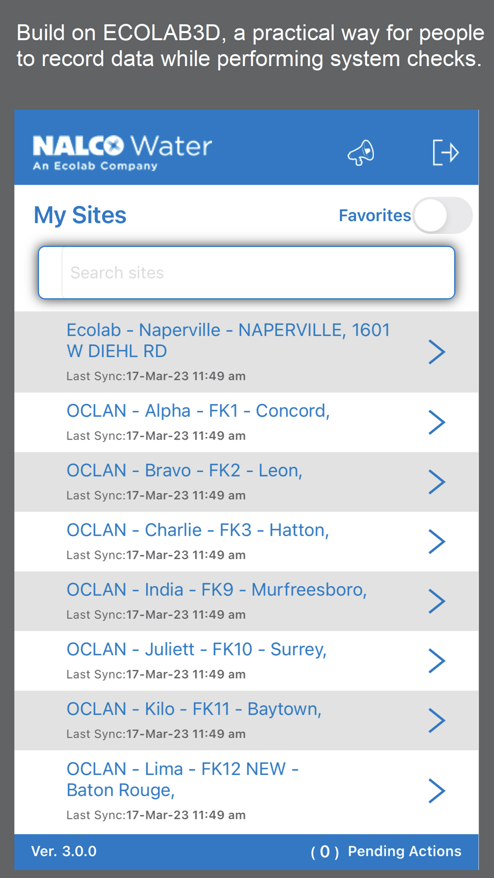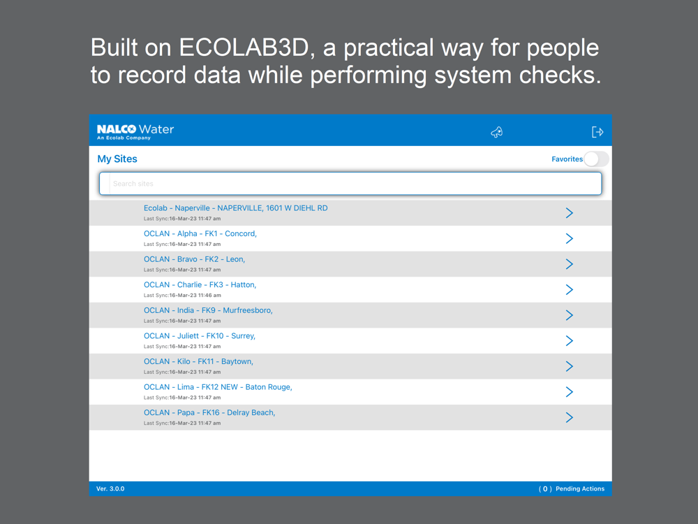The Nalco Water E-data mobile app provides a simple, practical way for both sales associates and customers to capture and track system-specific data quickly and securely. The E-data mobile app helps customers ensure water systems are performing optimally and helps to proactively identify when corrective actions should be taken.