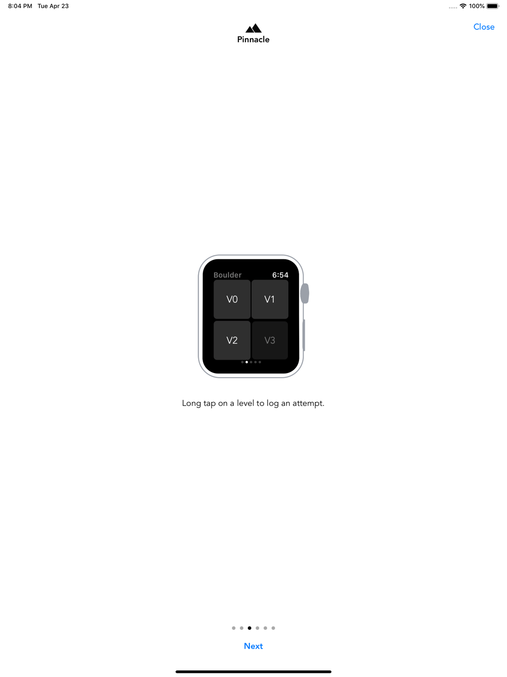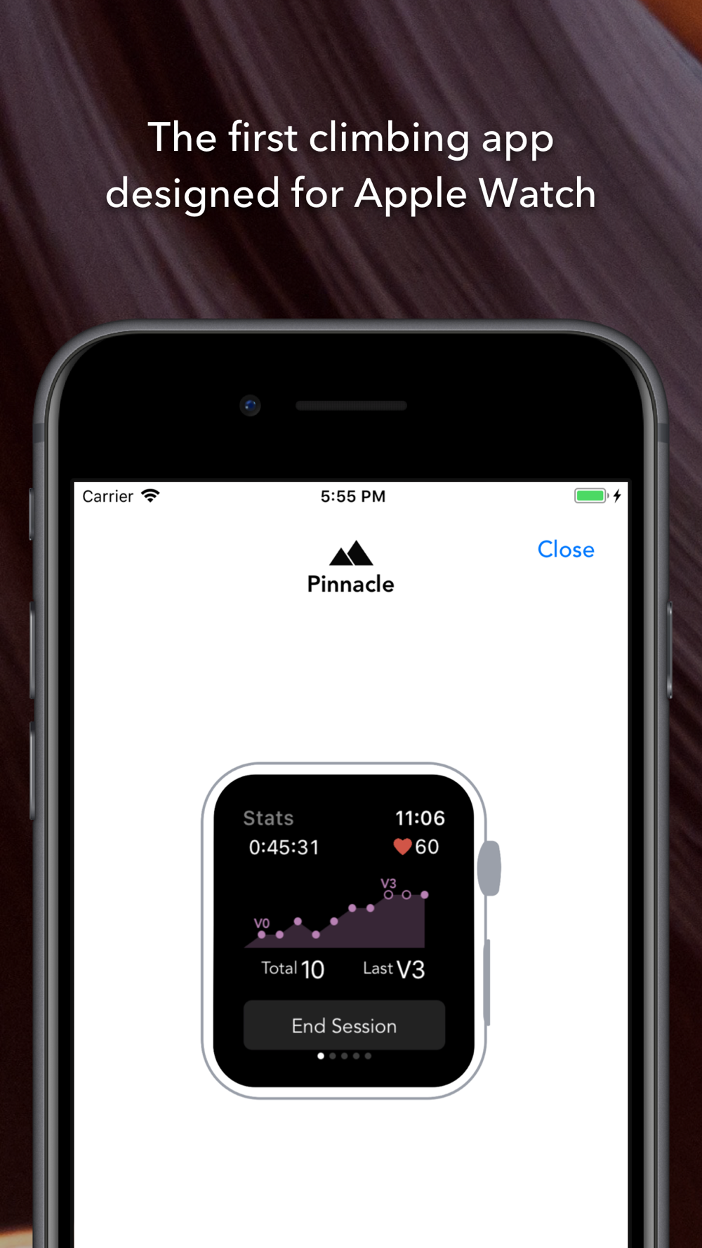 Pinnacle integrates with the Activities and Health App on your phone to show your heart rate during your climbing workouts and contribute to the Activity rings.