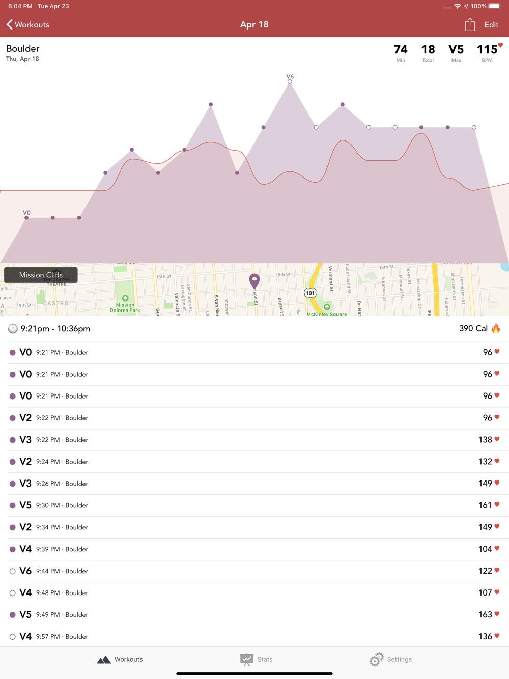 Sync your workouts to your Strava profile including heart rate, energy burned, location, and max difficulty.