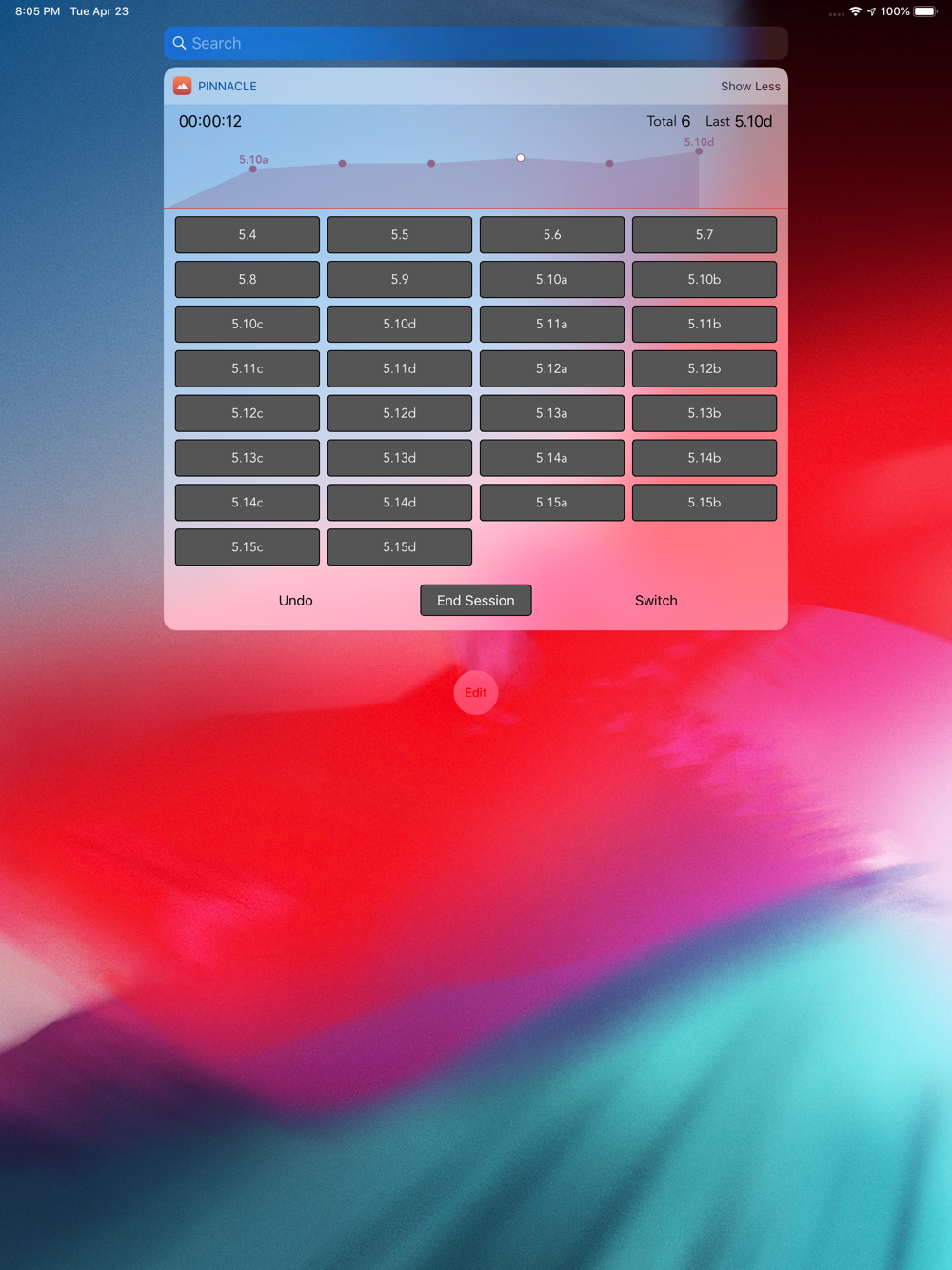 The Today Widget allows you to track your climbs without having to unlock your phone.