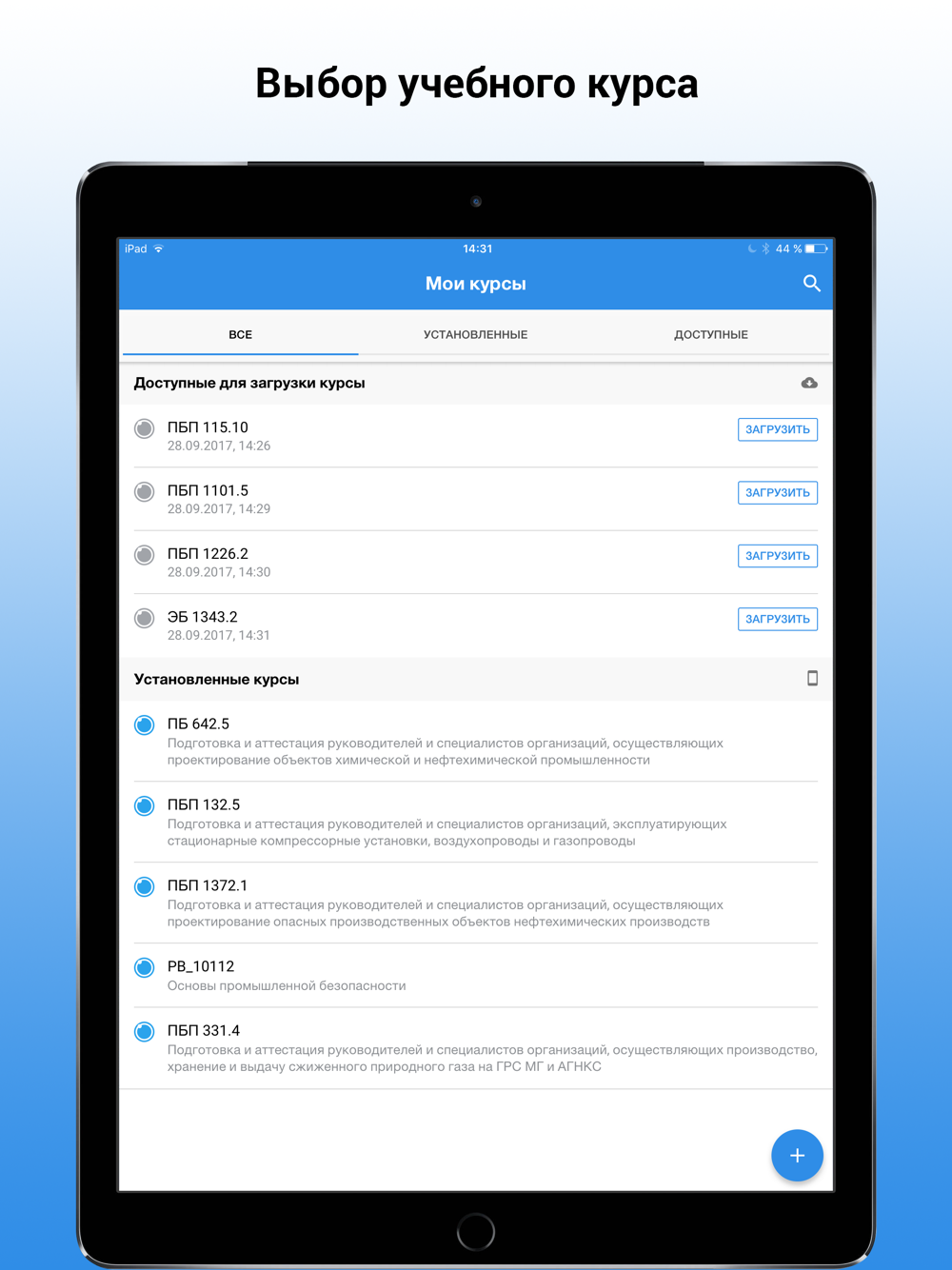 Для работы в мобильном приложении доступны обучающие продукты, размещенные в Вашем экземпляре системы "ОЛИМПОКС:Предприятие" по следующим направлениям производственной безопасности: