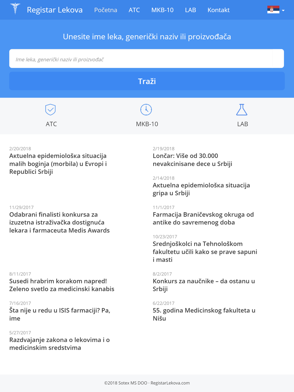 Registar Lekova omogućuje jednostavnu i brzu pretragu svih registrovanih lekova u u Republici Srbiji i u Republici Srpskoj.