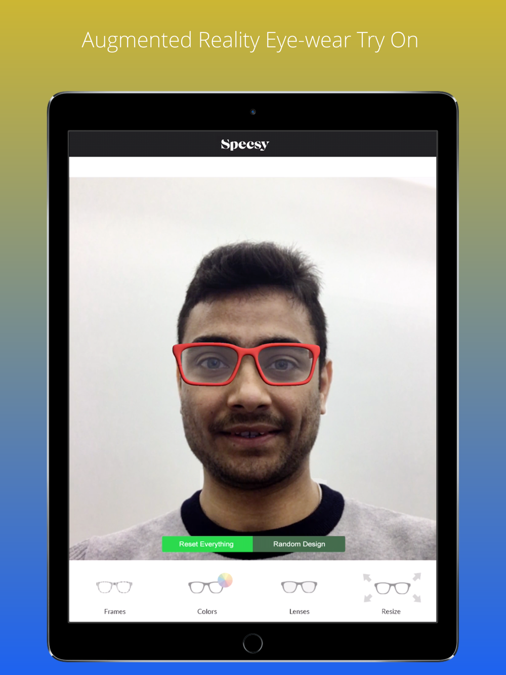Specsy creates one-of-a-kind 3D printed custom frames, digitally designed by opticians, based on a 3D scan on their patient's head. The Specsy AR App is a fun and easy way to try designing custom frames on yourself and offers optical retailers a simple way to introduce technology into their stores. The app uses front camera of your device at it's best by combining AR & face tracking technology.