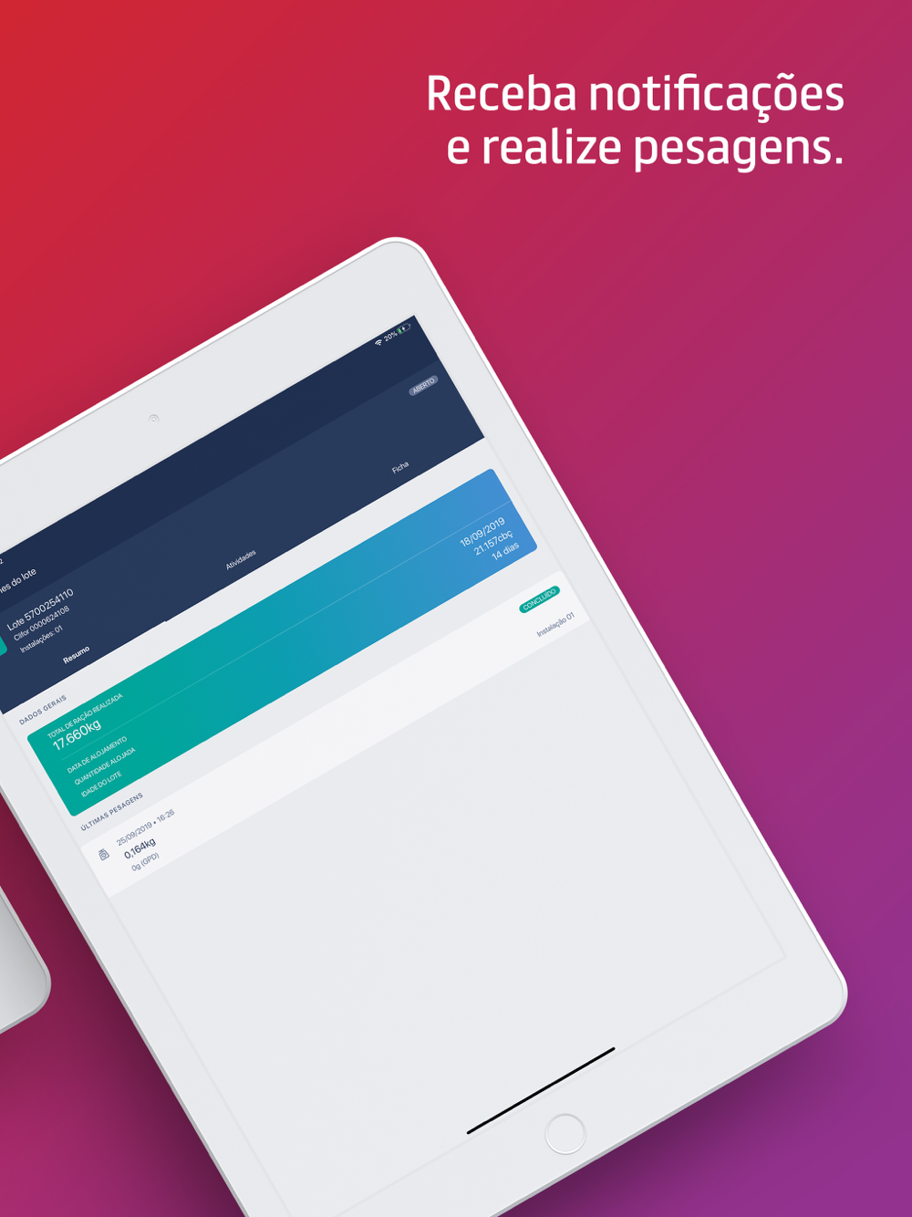Também é possível ao produtor acompanhar e realizar lançamento de pesagem e mortalidade, recurso que oferece uma visão dinâmica dos seus lotes e análise preditiva para suas operações de abate.
