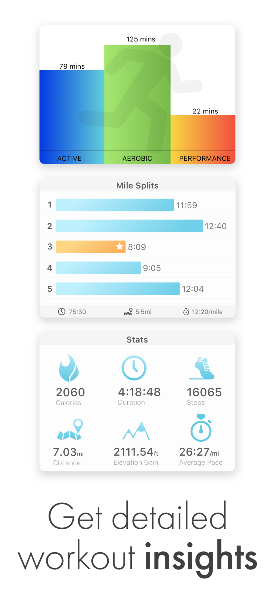 - Workouts include Swimming, Surfing, Skating, Crossfit, Yoga, Weight Lifting, Spinning, Golfing, and hundreds more.