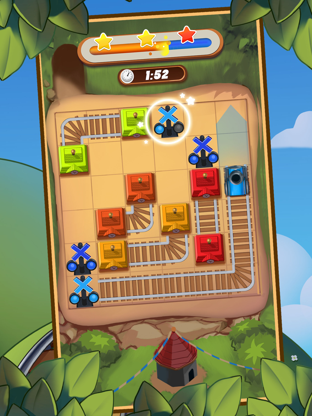 It is super simple to play but really challenging when you advance in the game. Connect the train stations of the same color together, but your train track cannot cross other rails of different colors.