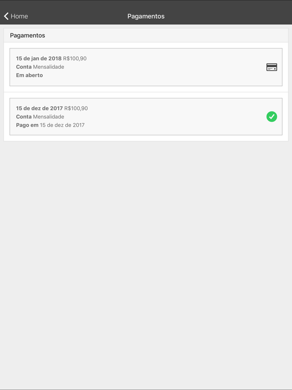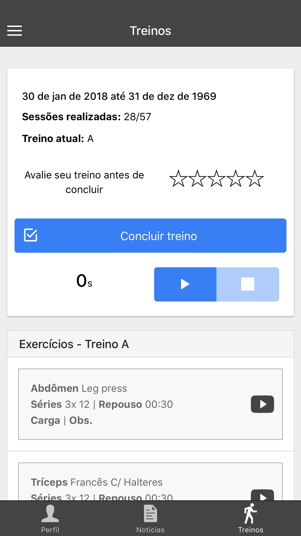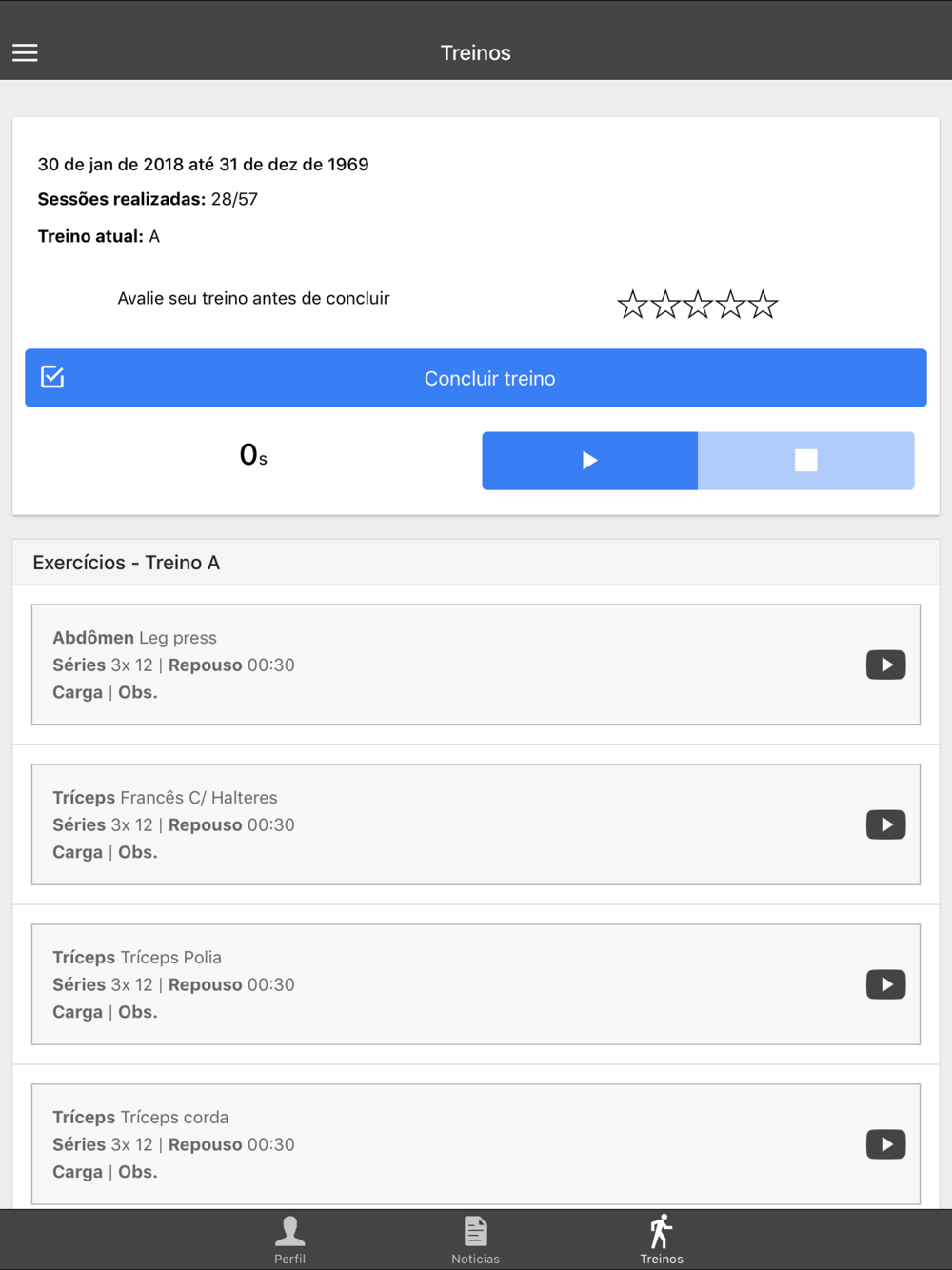 Consulta de treinos, pagamentos, notícias, avaliações físicas.