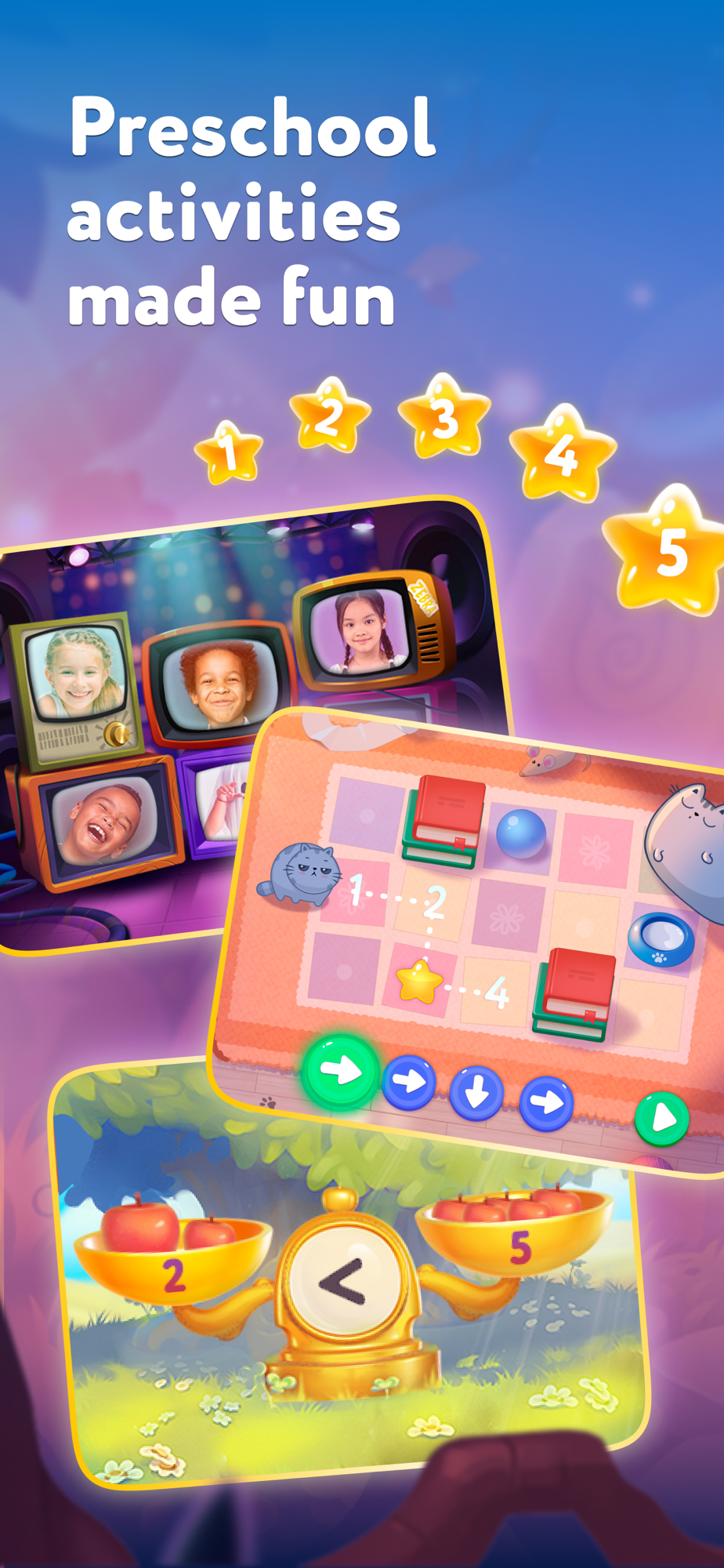 40+ educational games that combine play, skill-building activities, development of key abilities, and pre-school tasks.