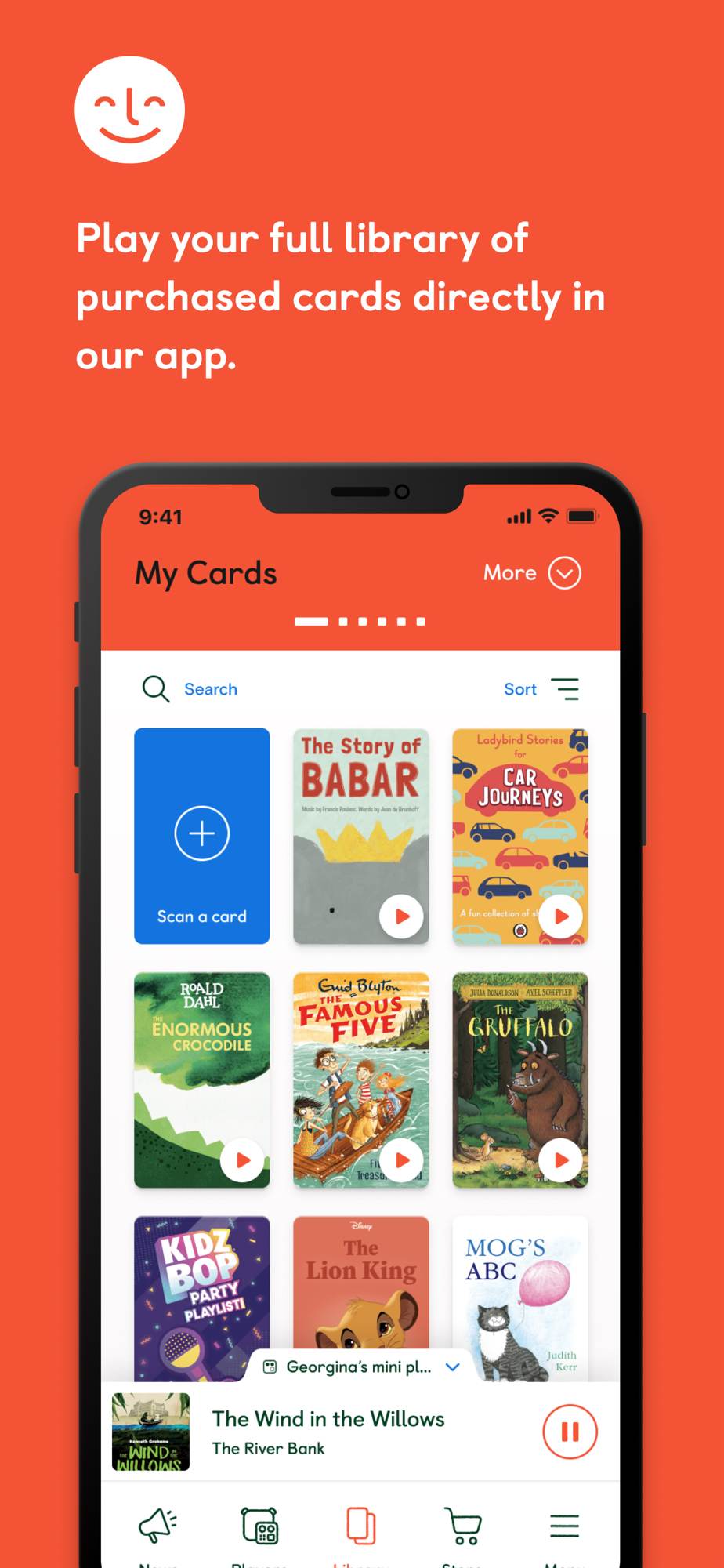 Yoto App allows parents to perform initial setup of Yoto Player, then control it remotely. The app can also be used to link your own songs and stories to blank Yoto Cards.
