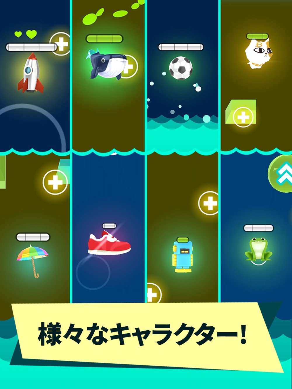 1.画面をタッチして‘コインキャラクター’が水に溺れないようにジャンプします。