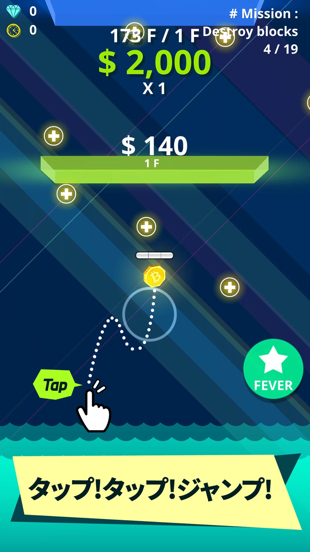 3.ブロックを突き破ってもっと高く上がるほどもっと多いお金を獲得できます。