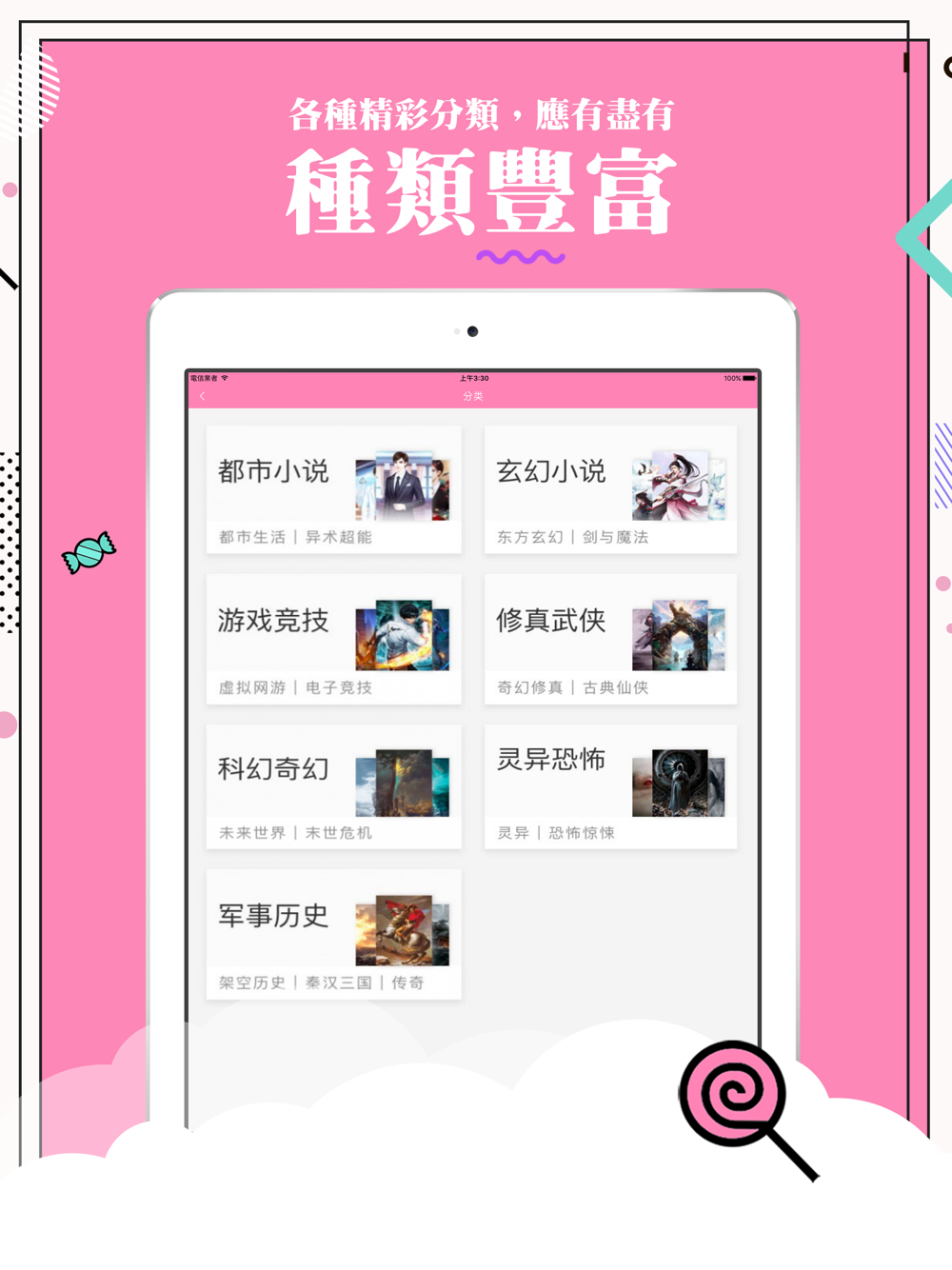 2、分类全,24种题材随心读