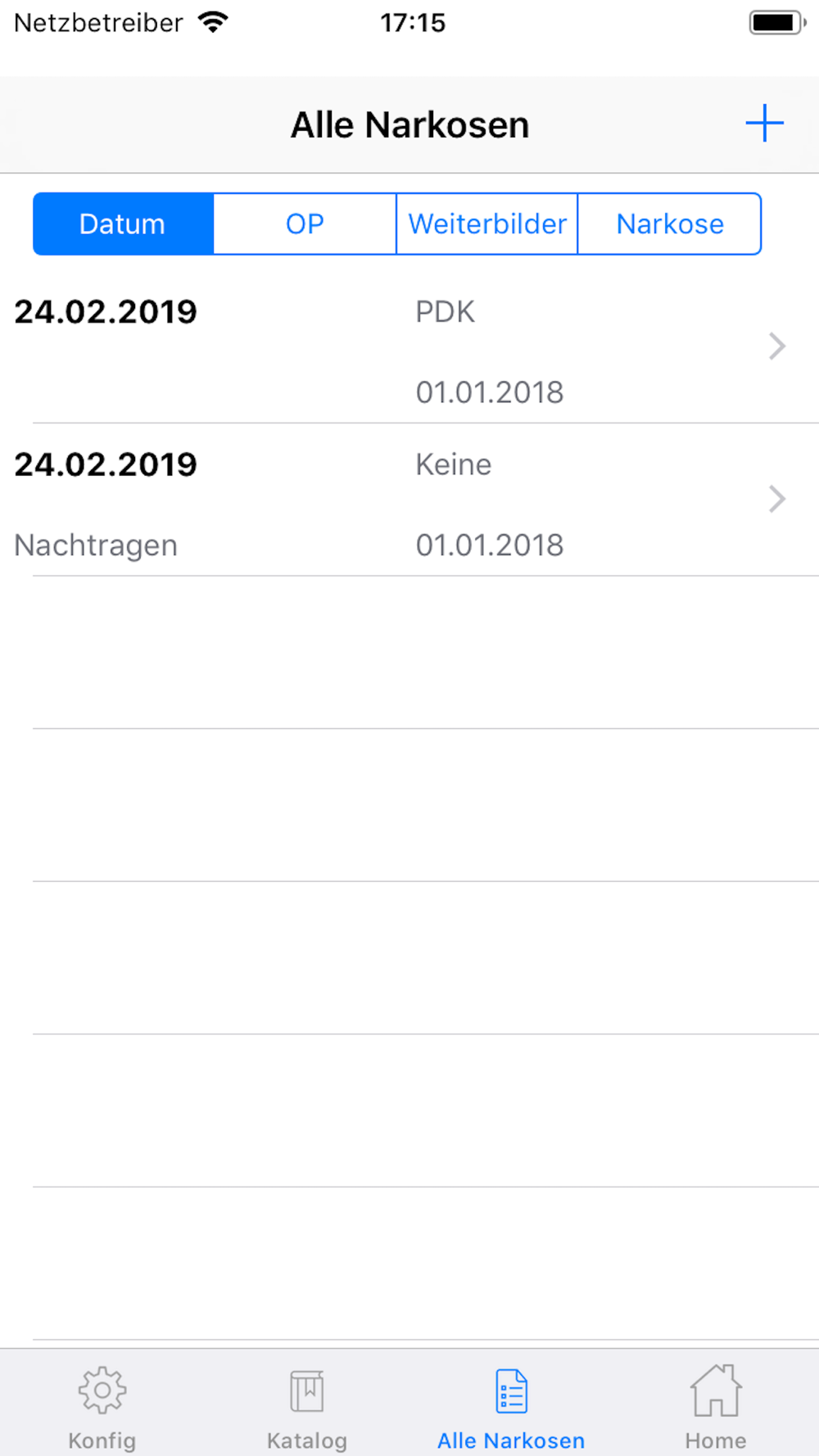 Legen Sie sich Listen für Eingriffe, Narkosearten und Weiterbilder an.